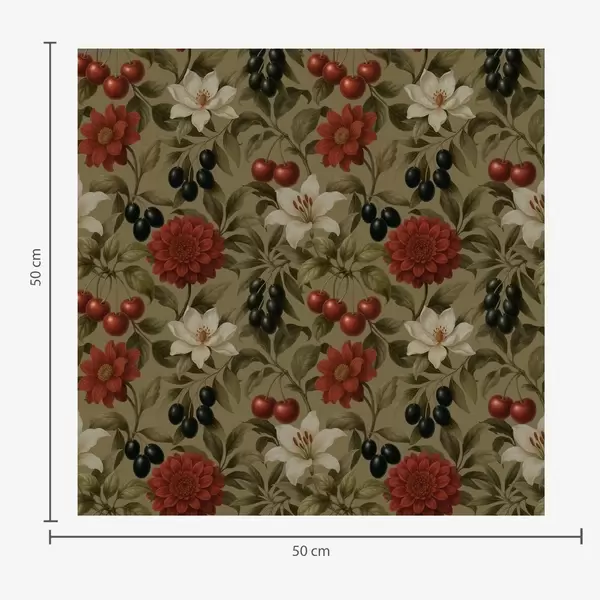 Tapet Cireșe, flori și măsline negre Nr. a00384