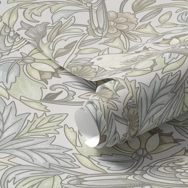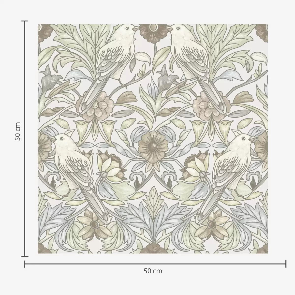 Tapet Păsări Art Nouveau și flori stilizate în pastel Nr. a00385