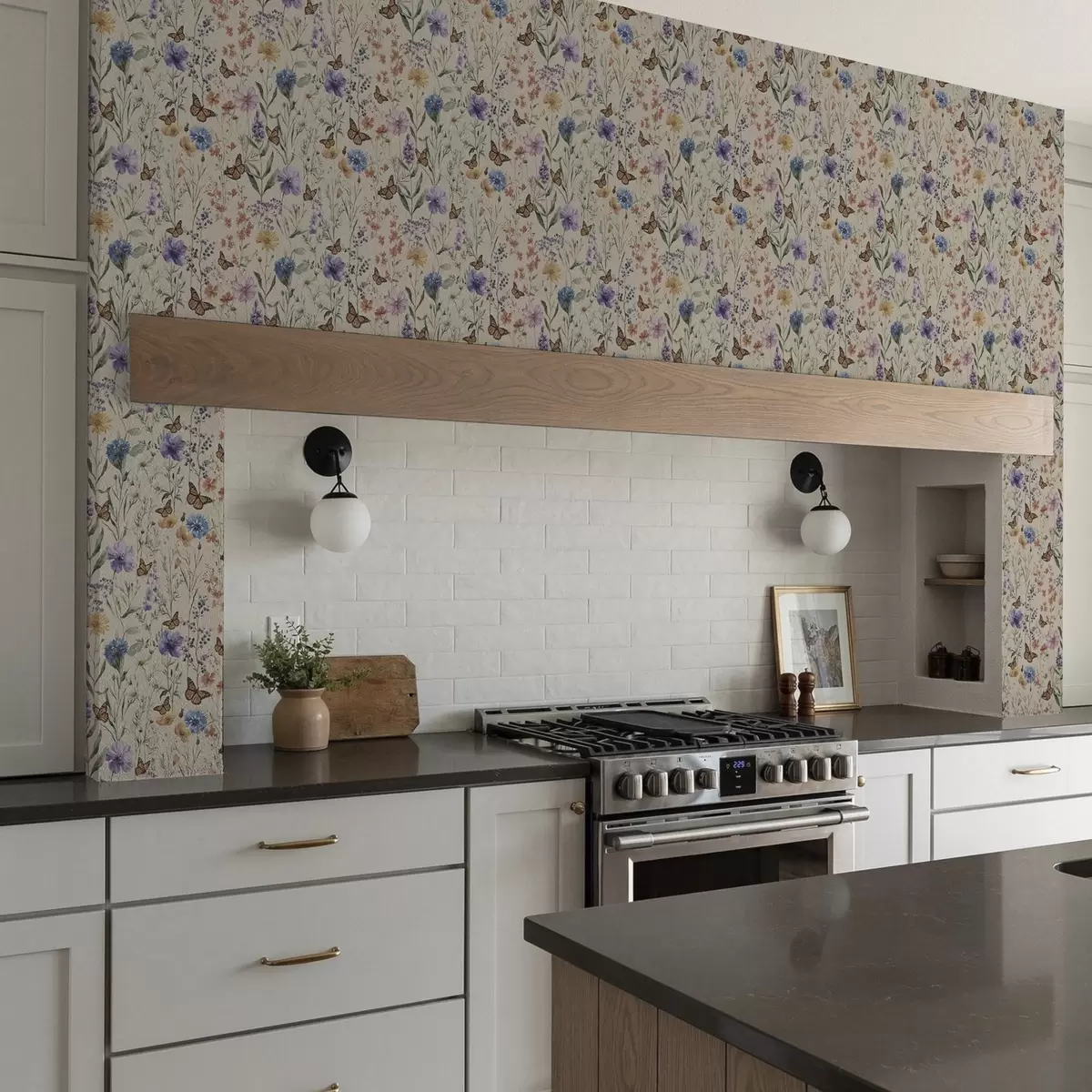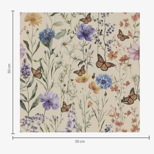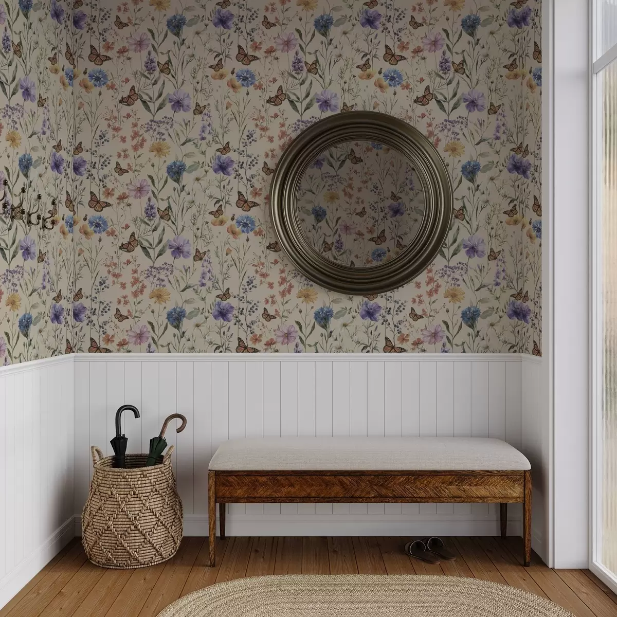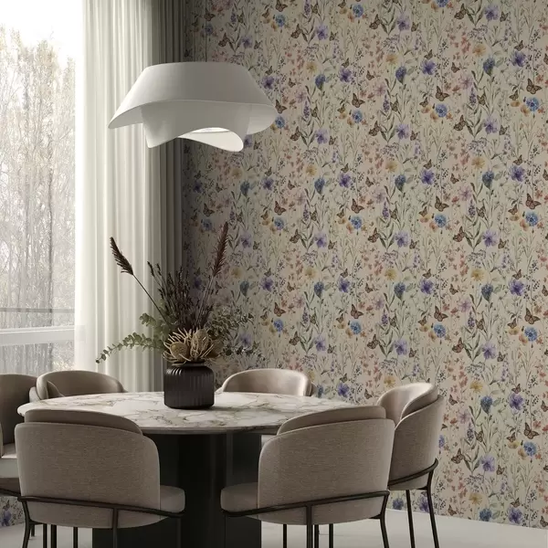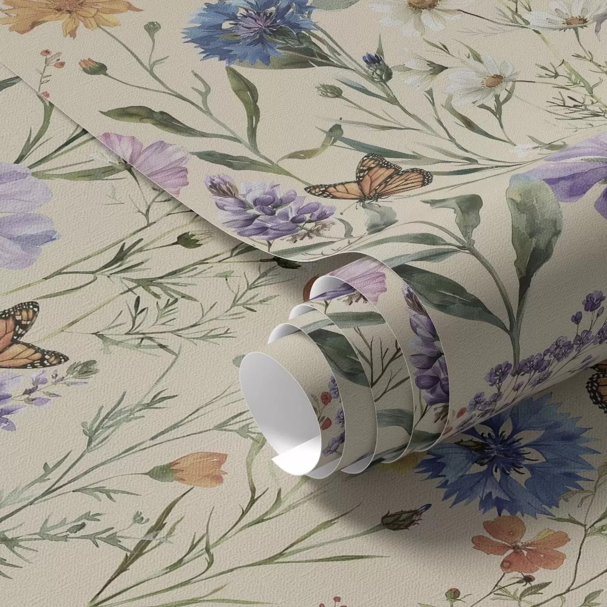 Wallpaper Flori sălbatice și fluturi în stil acuarelă moale a00389