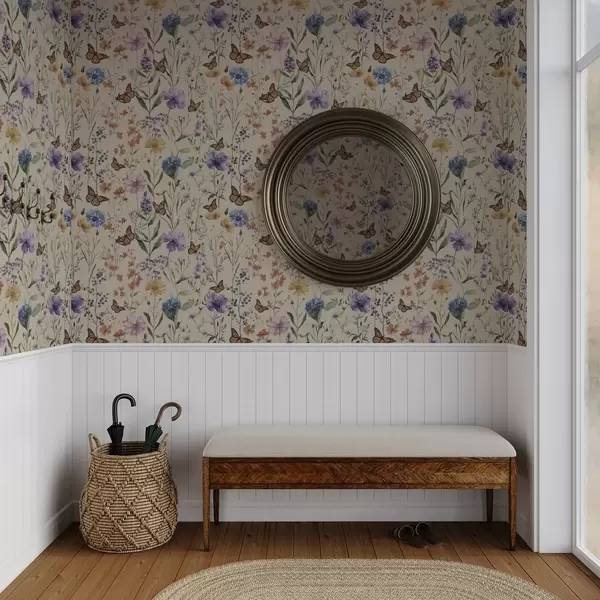 Tapet Flori sălbatice și fluturi în stil acuarelă moale Nr. a00389