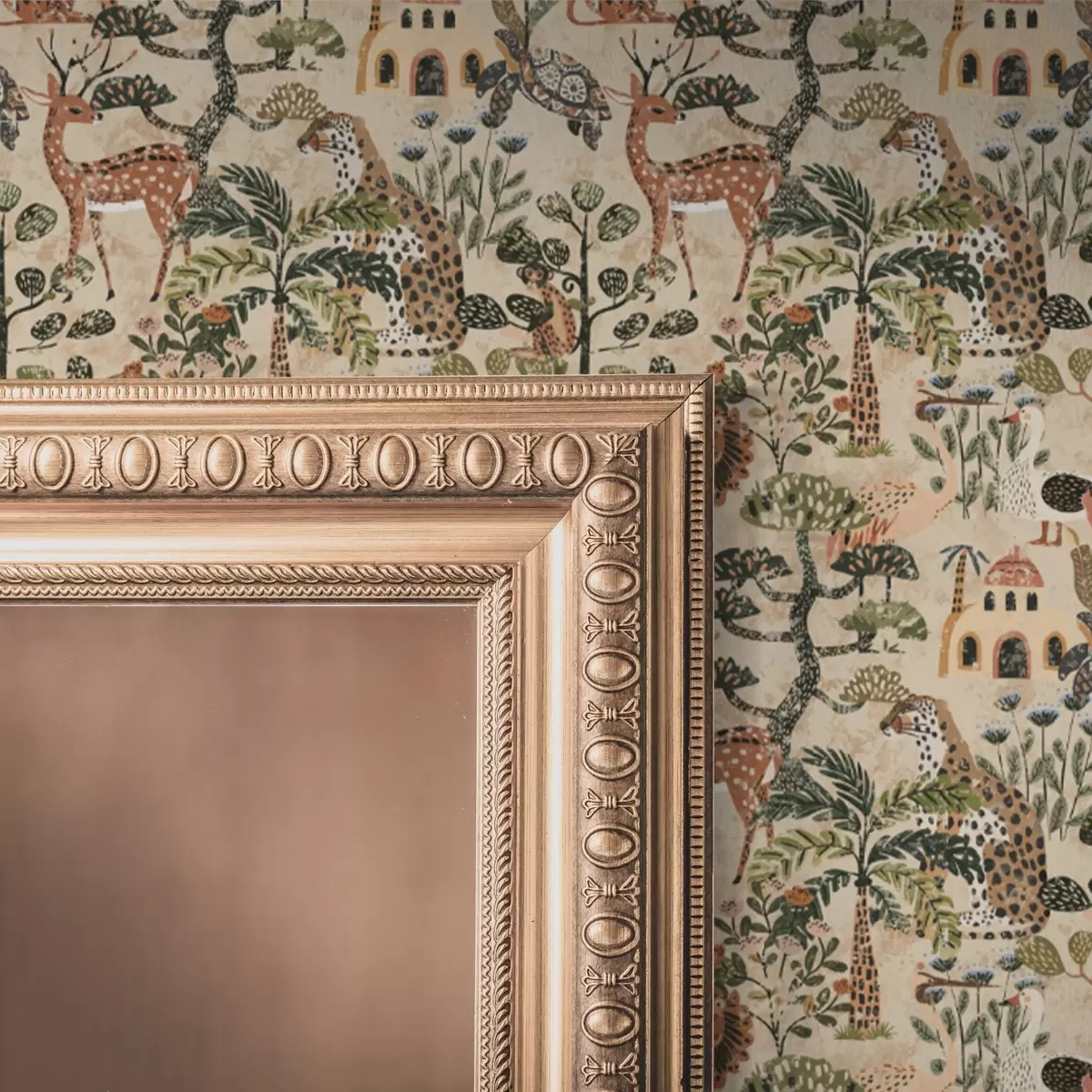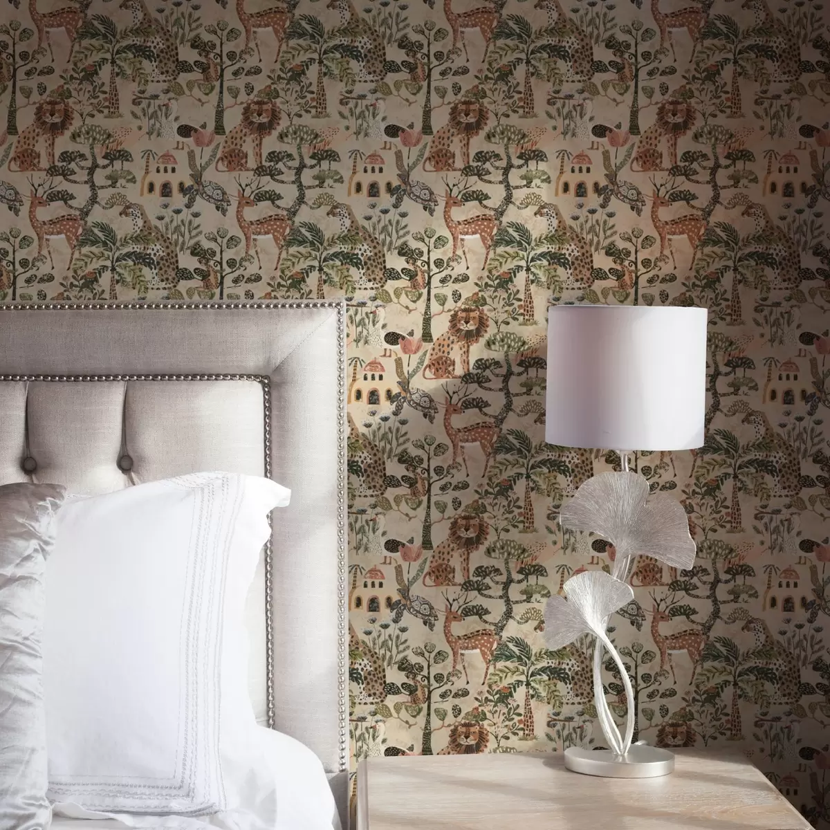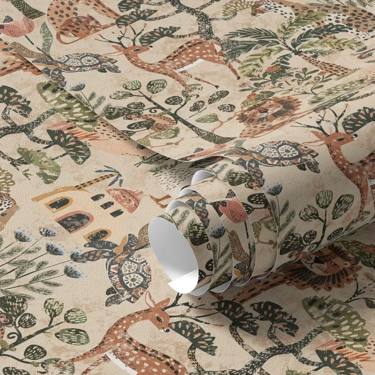 Tapet Animale de safari și frunze de savană în tonuri calde de pământ Nr. a00392