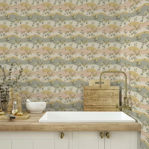 Tapet Flori de pajiște ondulate în stil minimalist pastel Nr. a00396