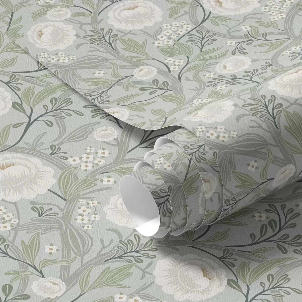 Tapet Frunze verzi delicate și flori cremoase cu frunze verzi și flori cremoase cu liane grațioase Nr. a00398