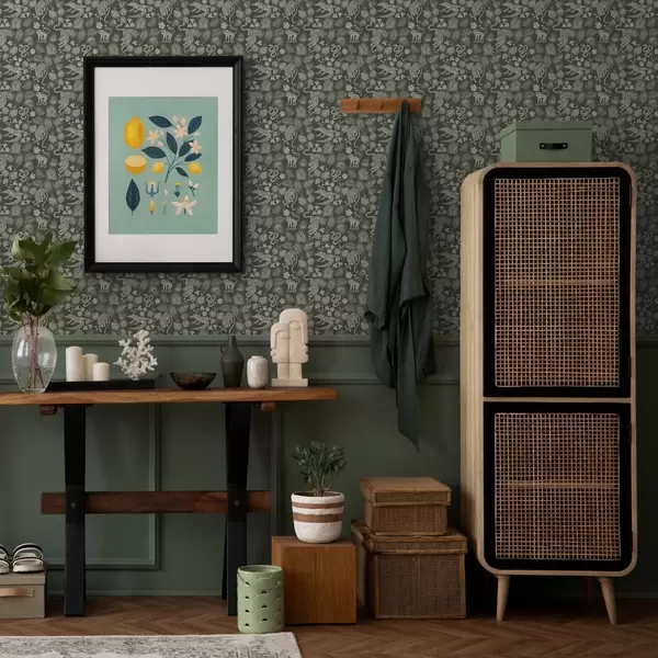 Wallpaper Siluete de animale sălbatice printre frunze tropicale a00404