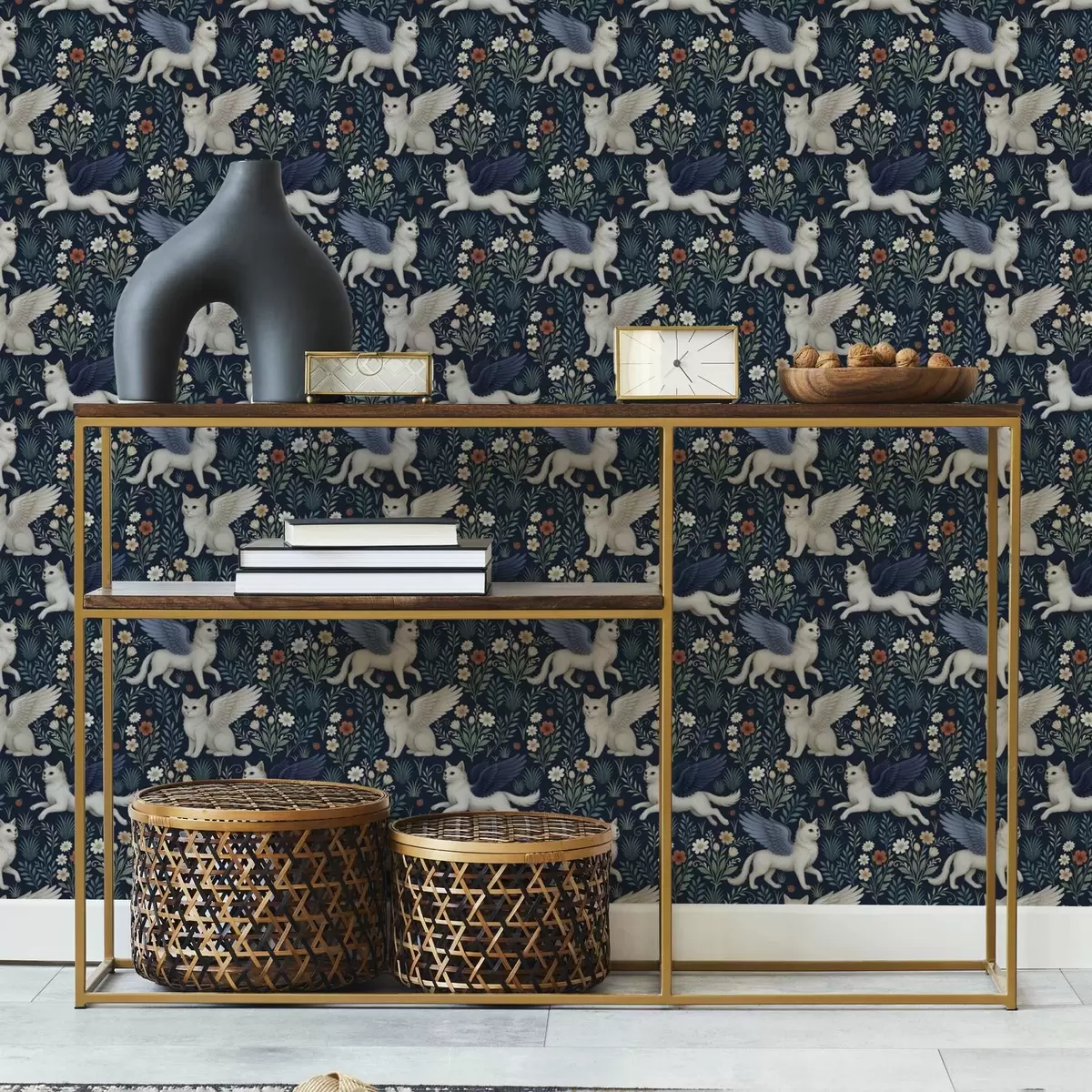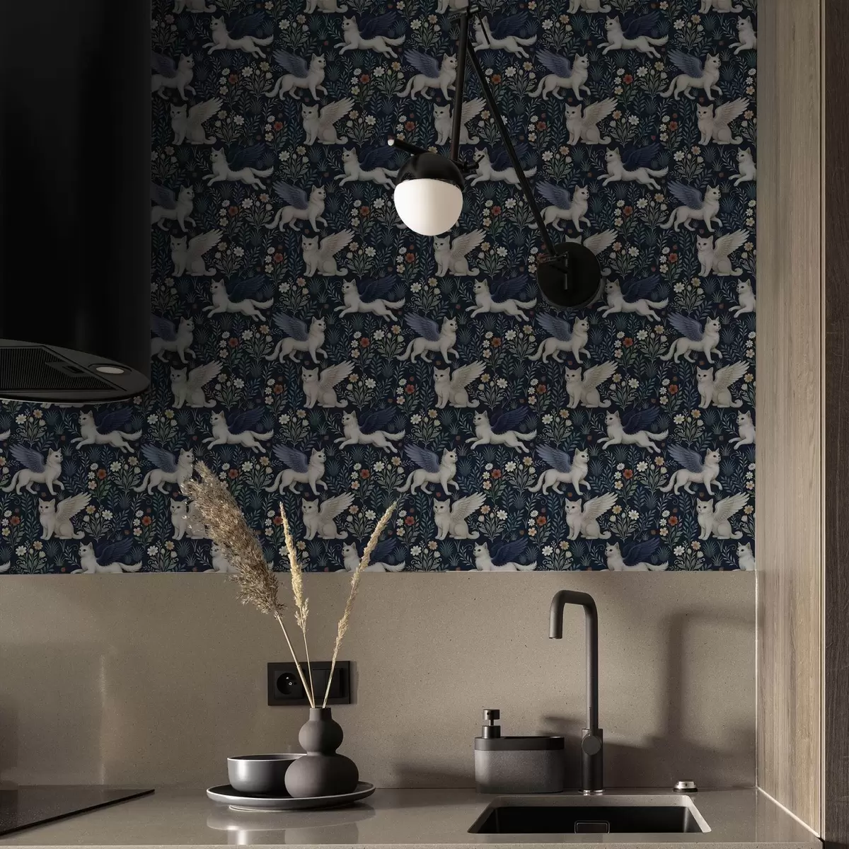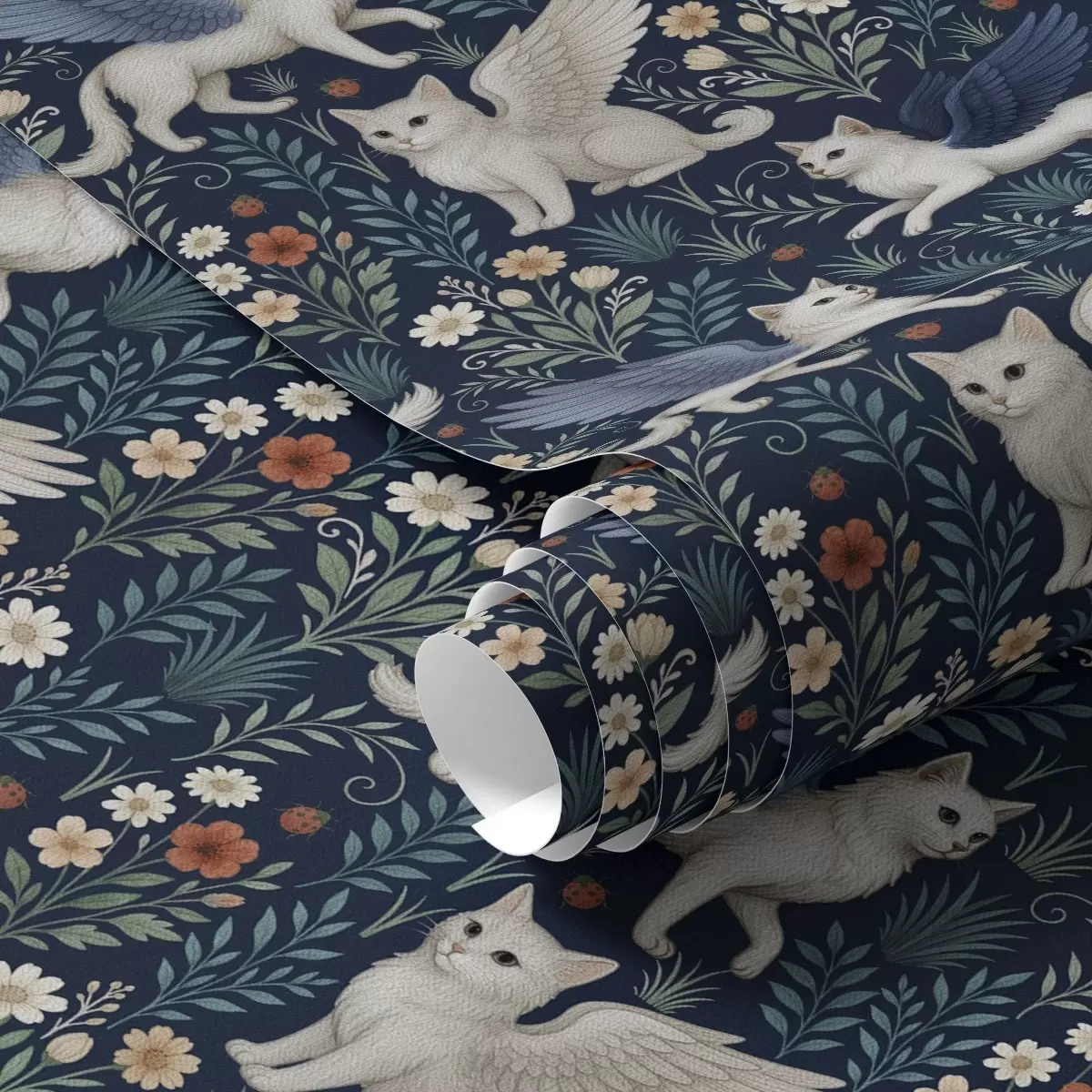 Tapet Fantasy pisici cu aripi printre flori Nr. a00408
