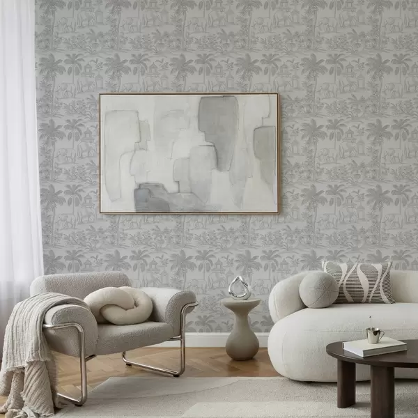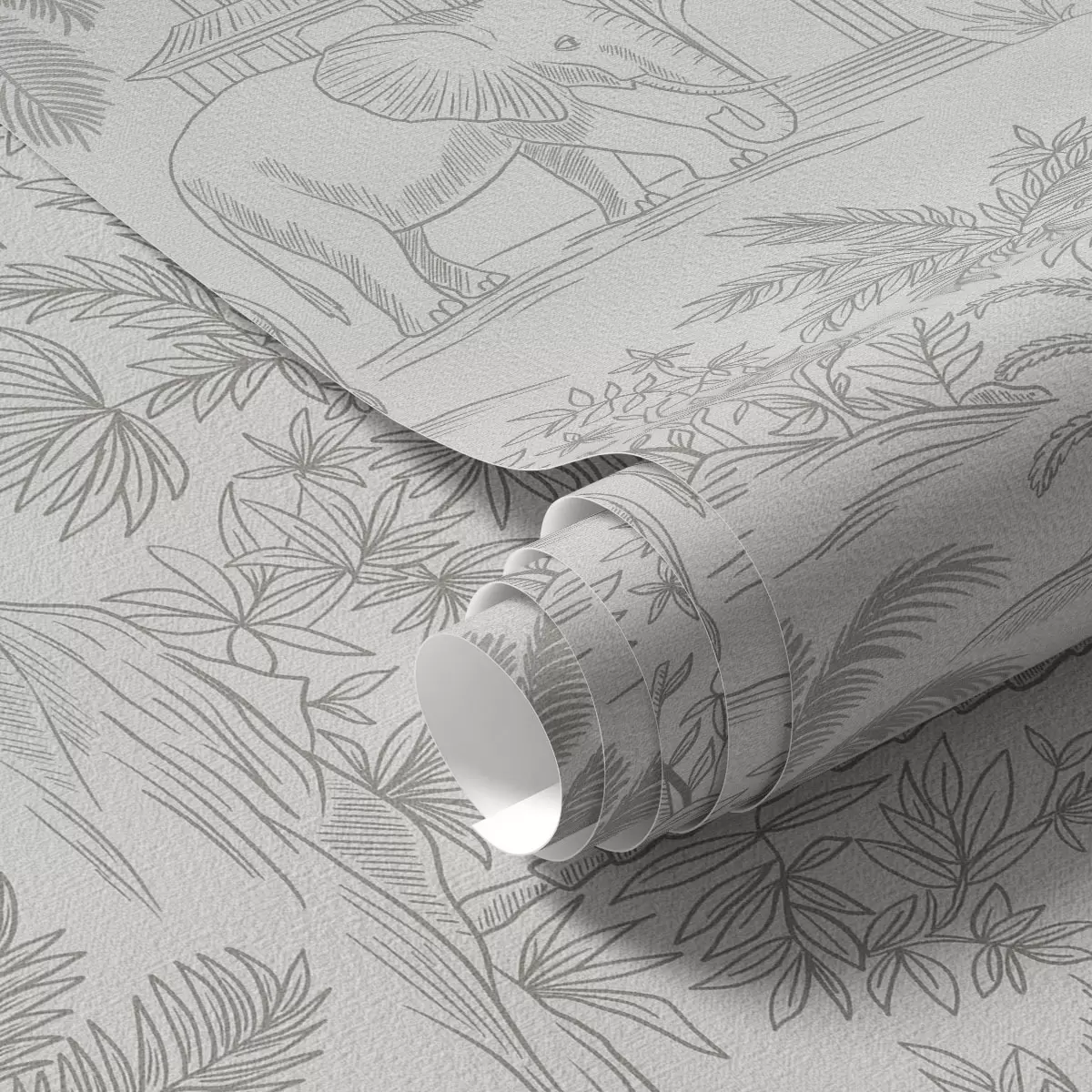 Tapet Elefanți monocromi și junglă în stil grafic Nr. a00410