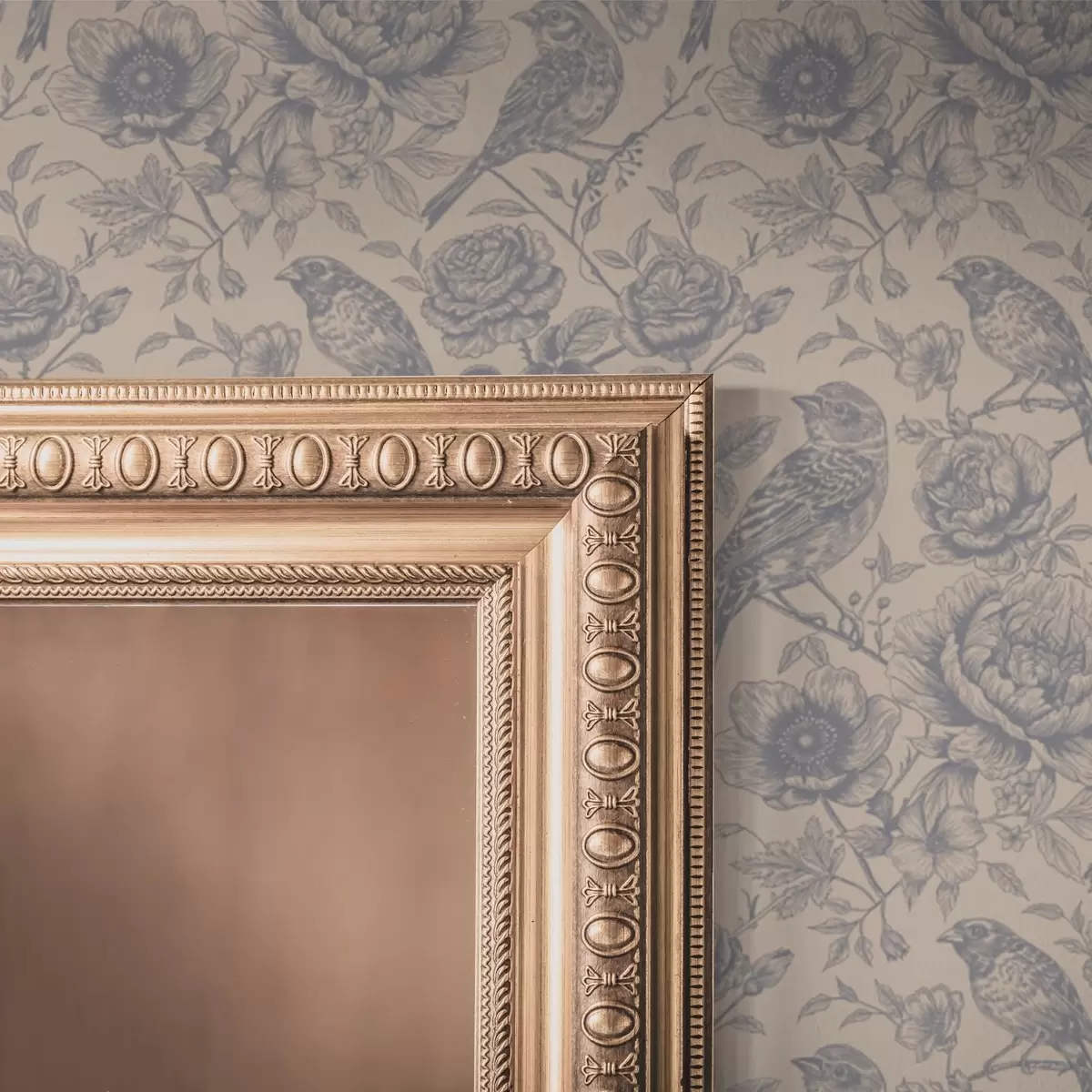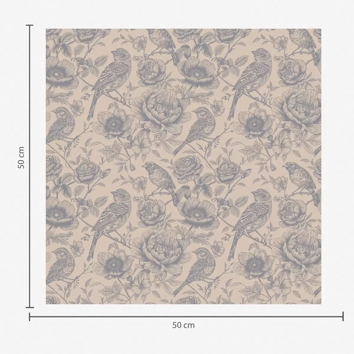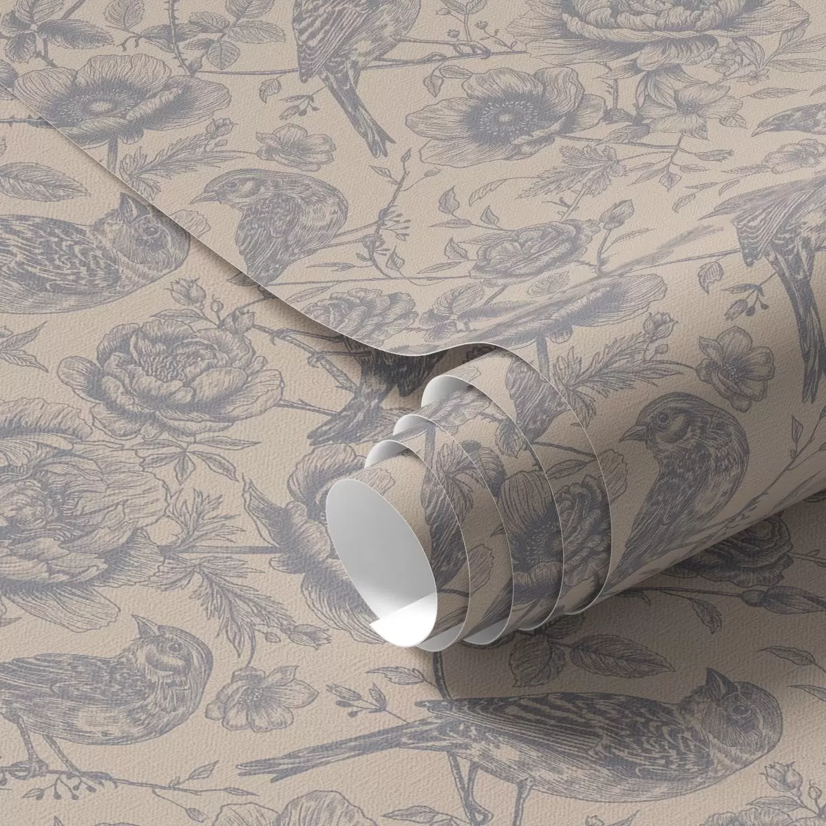 Tapet Păsări și flori de epocă pe un fundal bej moale Nr. a00423
