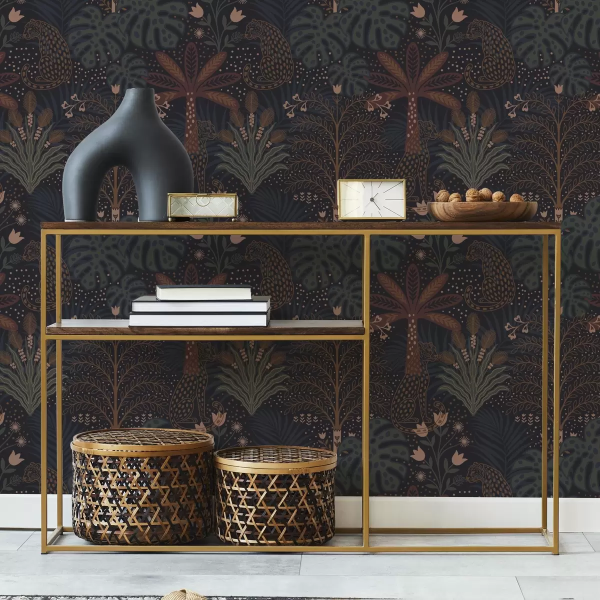Tapet Jungla întunecată cu leoparzi palmieri și flori Nr. a00424