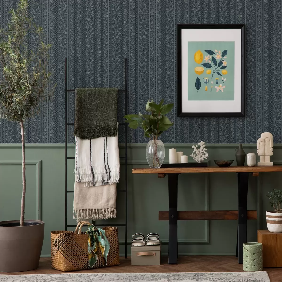 Tapet Model în dungi cu crengi pe un fundal albastru Nr. a00425
