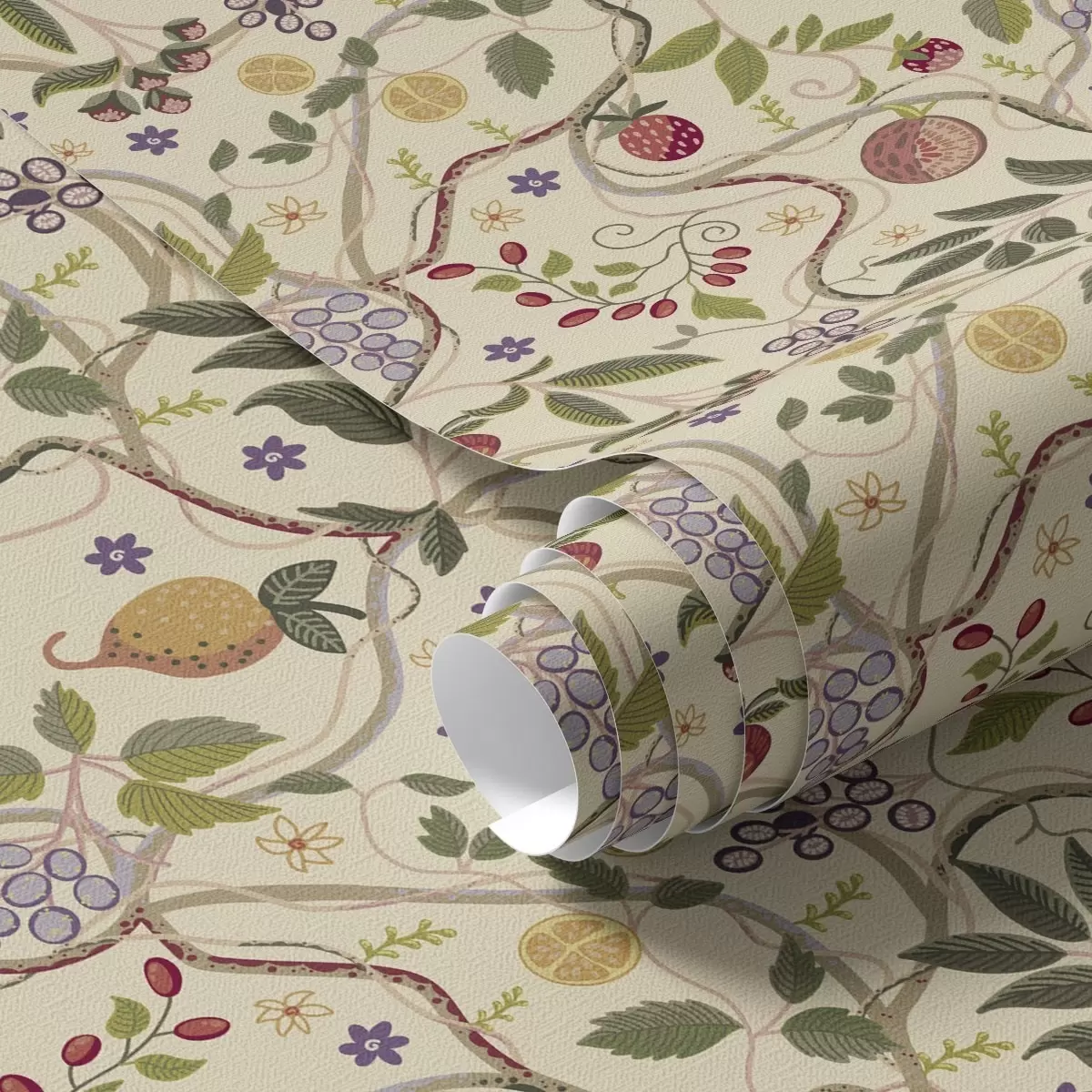 Tapet Model de fructe cu fructe de pădure, ramuri și flori Nr. a00428