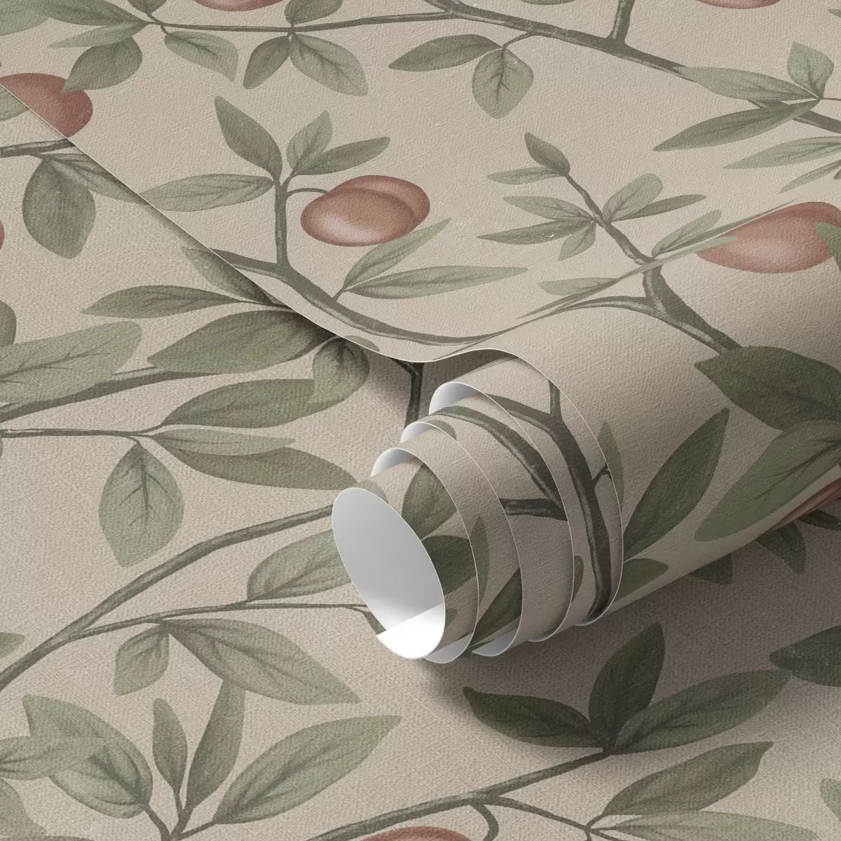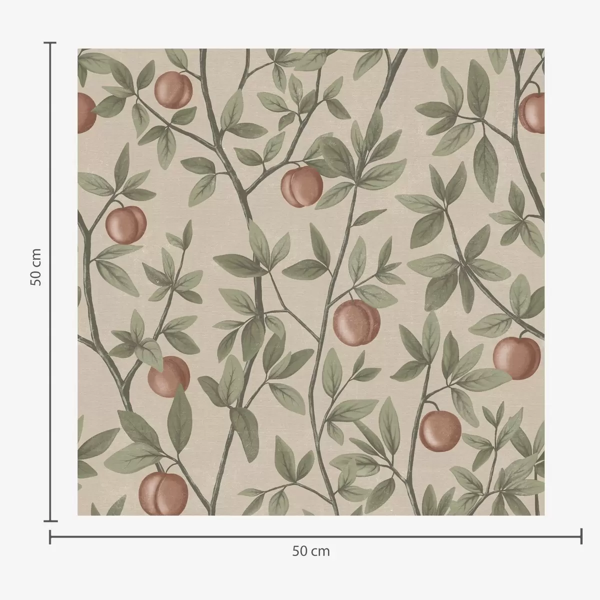 Tapet Piersici pe ramuri cu frunze verzi pe fundal bej Nr. a00429