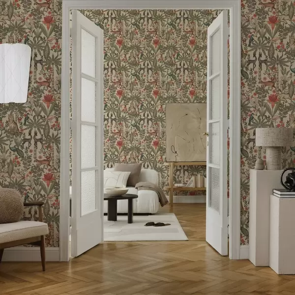 Wallpaper Stil retro: Animale și flori pe un fundal de epocă a00431