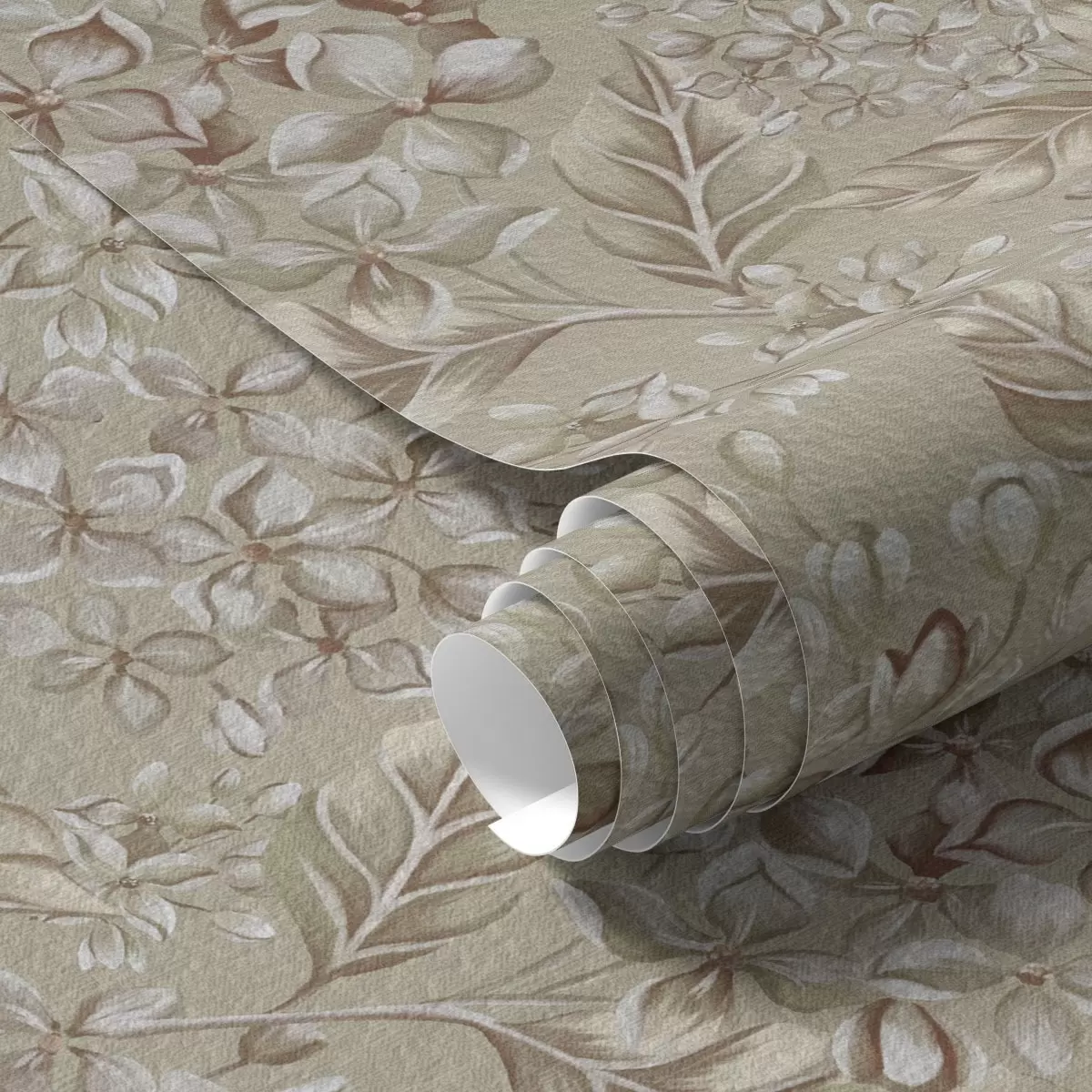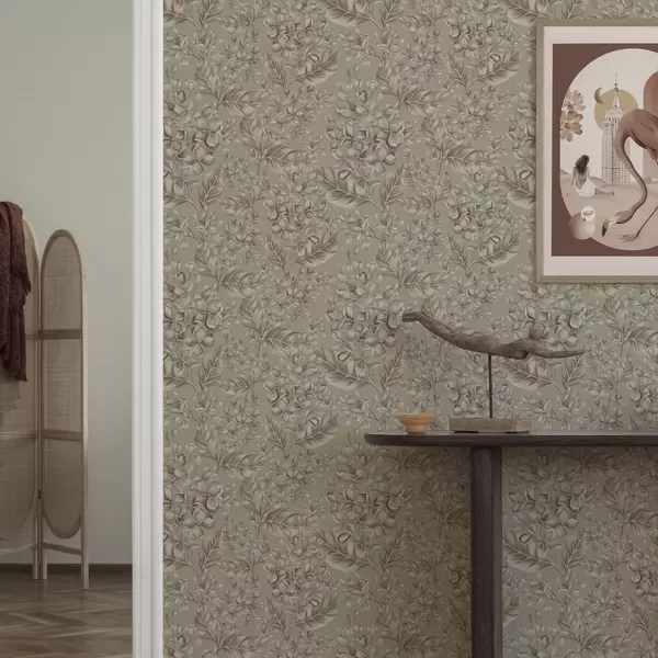 Tapet Ramuri bej cu flori albe în nuanțe calde Nr. a00441