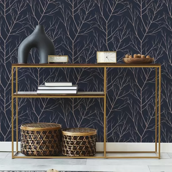 Tapet Ramuri roșii moi pe un fundal albastru marin adânc Nr. a00451