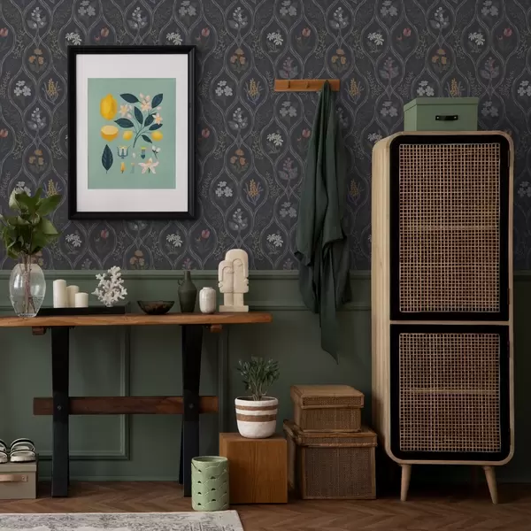 Tapet Cadru de epocă întunecat cu flori de grădină colorate Nr. a00454