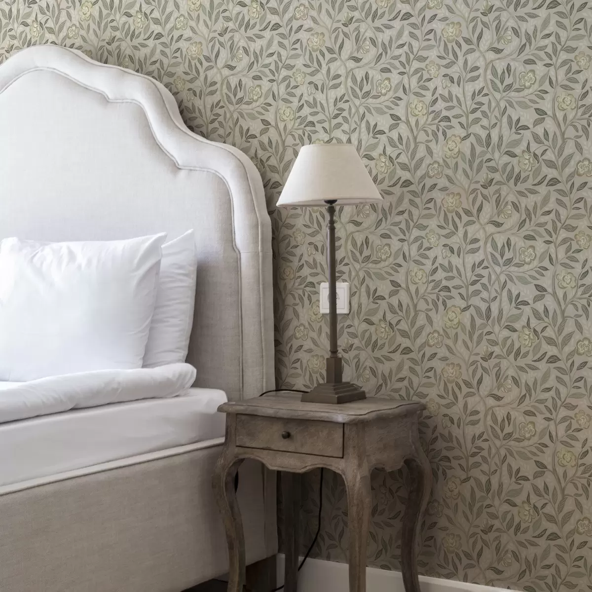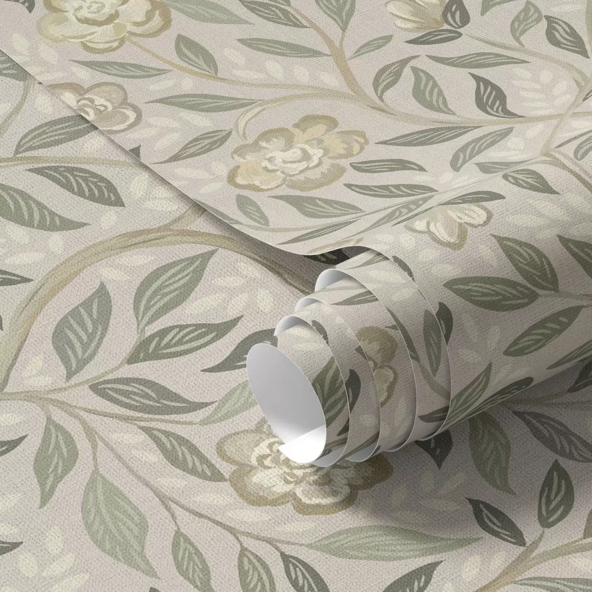 Tapet Trandafiri crem și frunze de măslin pe fundal roz prăfuit Nr. a00455