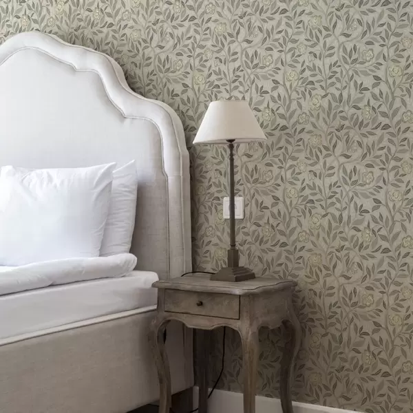 Tapet Trandafiri crem și frunze de măslin pe fundal roz prăfuit Nr. a00455