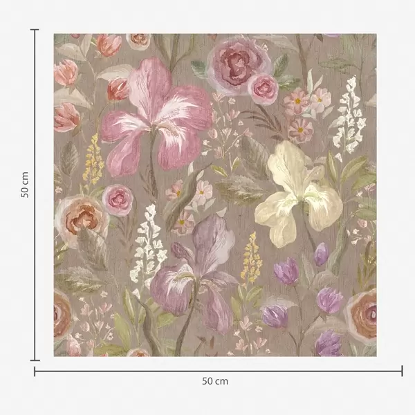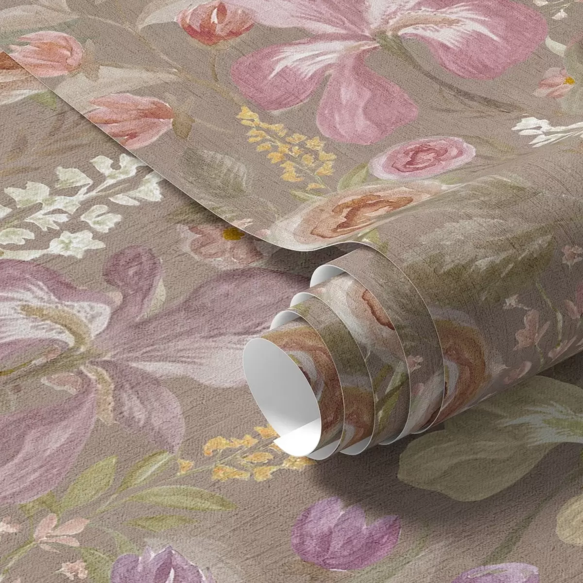 Tapet Vintage roz iris model de flori pe fundal texturat bej Nr. a00457