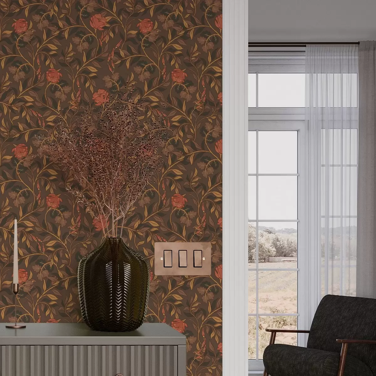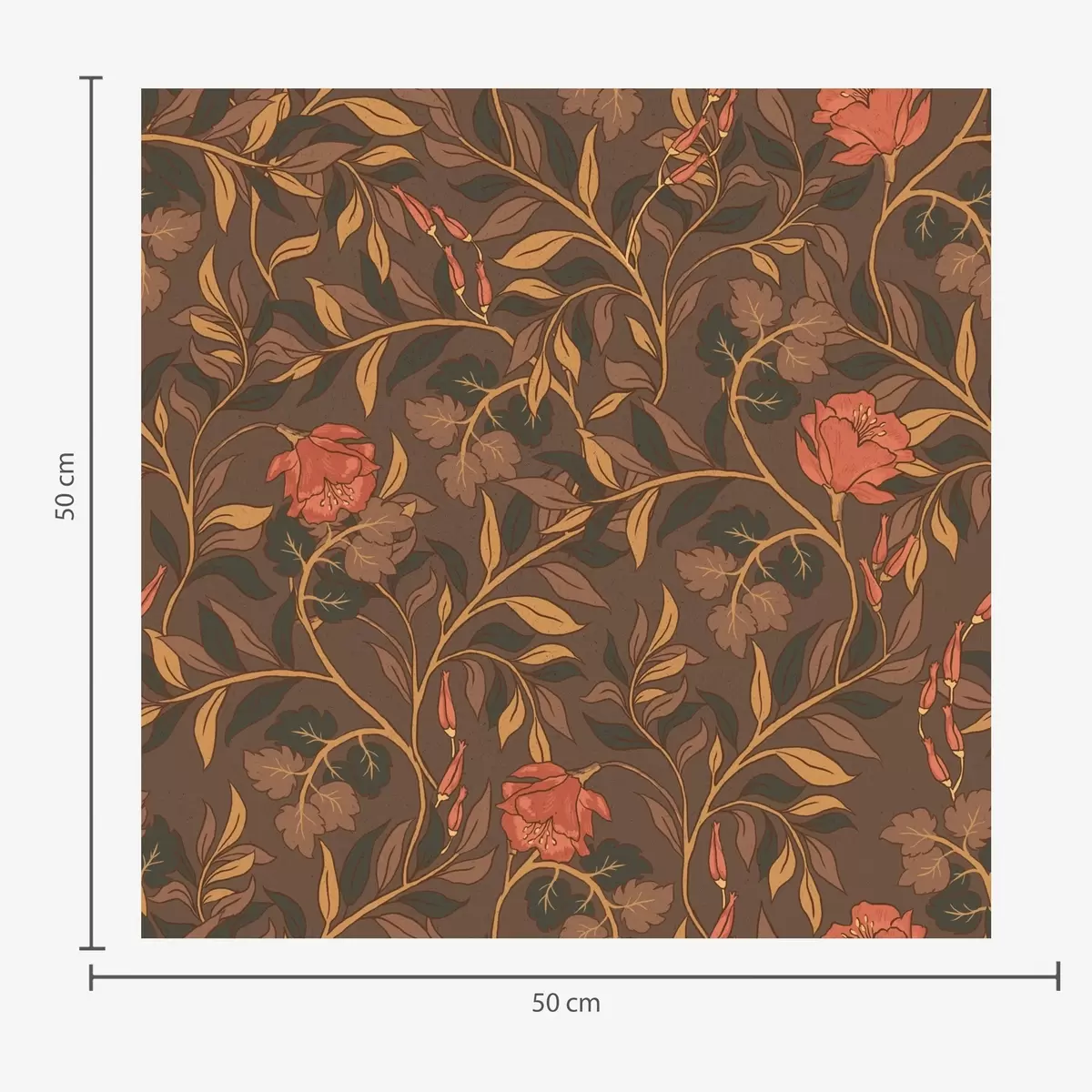Tapet Ramuri de teracotă înfloritoare pe un fundal maro Nr. a00460