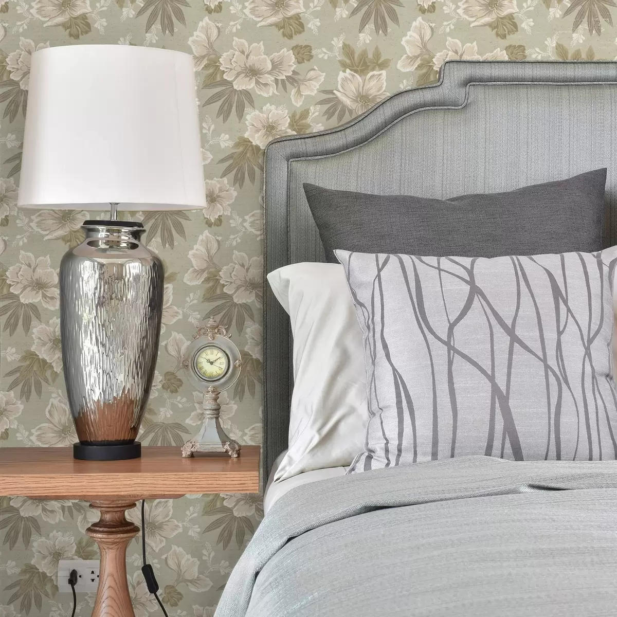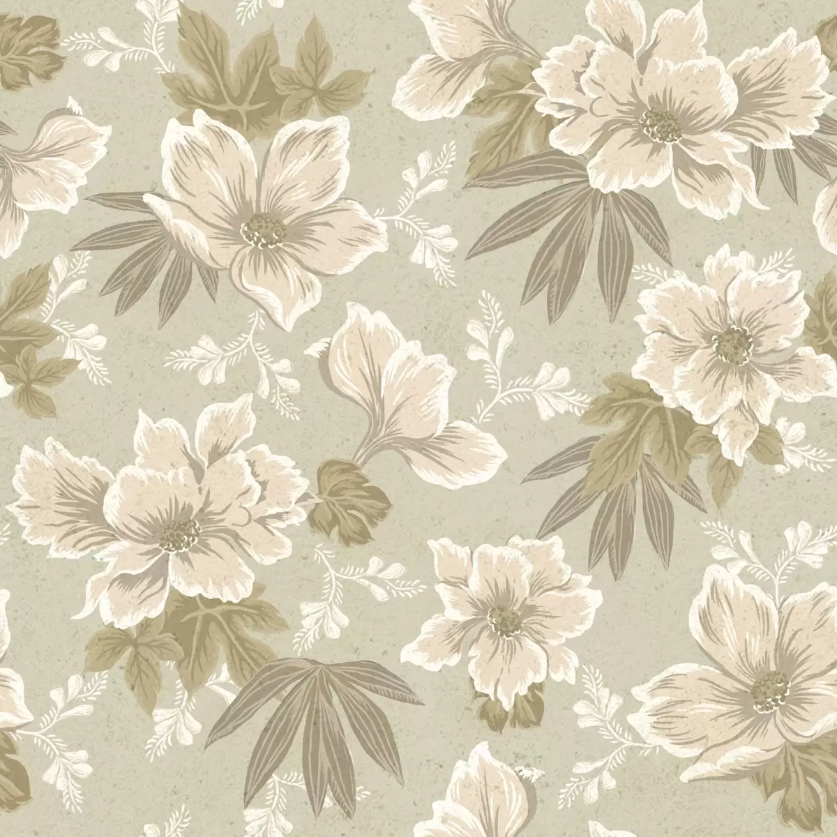 Wallpaper Flori crem pe un fundal verde măsliniu a00462