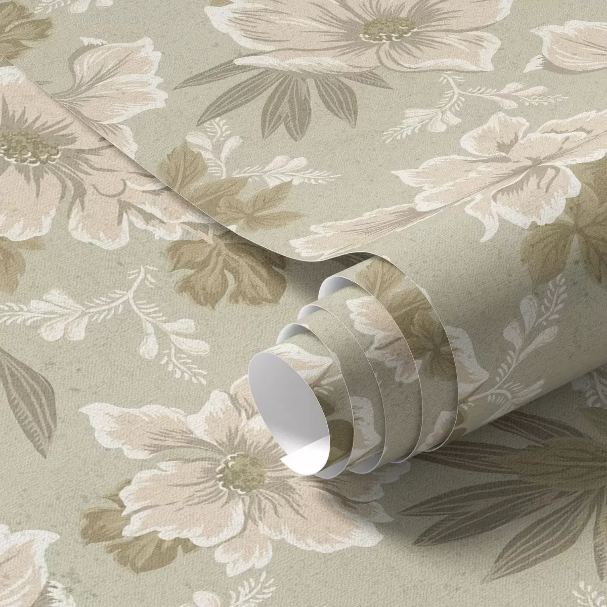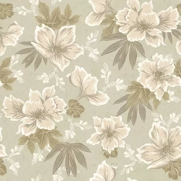 Tapet Flori crem pe un fundal verde măsliniu Nr. a00462