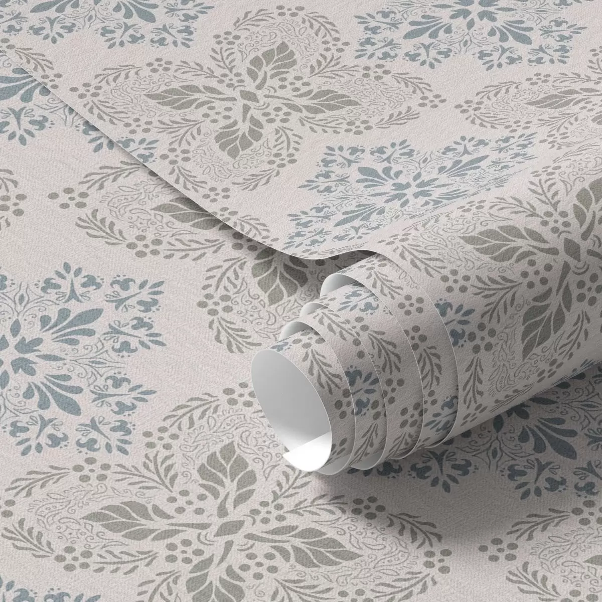 Tapet Modele simetrice de frunze gri-albastru Nr. a00467