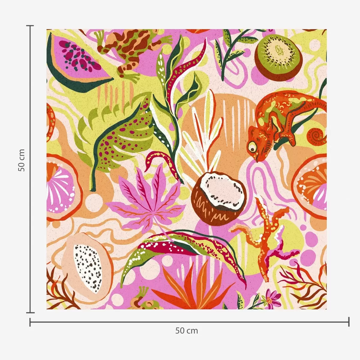 Tapet Fructe exotice, frunze și cameleoni în stil tropical Nr. a00469