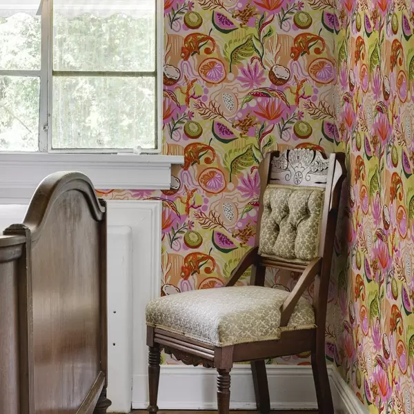 Wallpaper Fructe exotice, frunze și cameleoni în stil tropical a00469