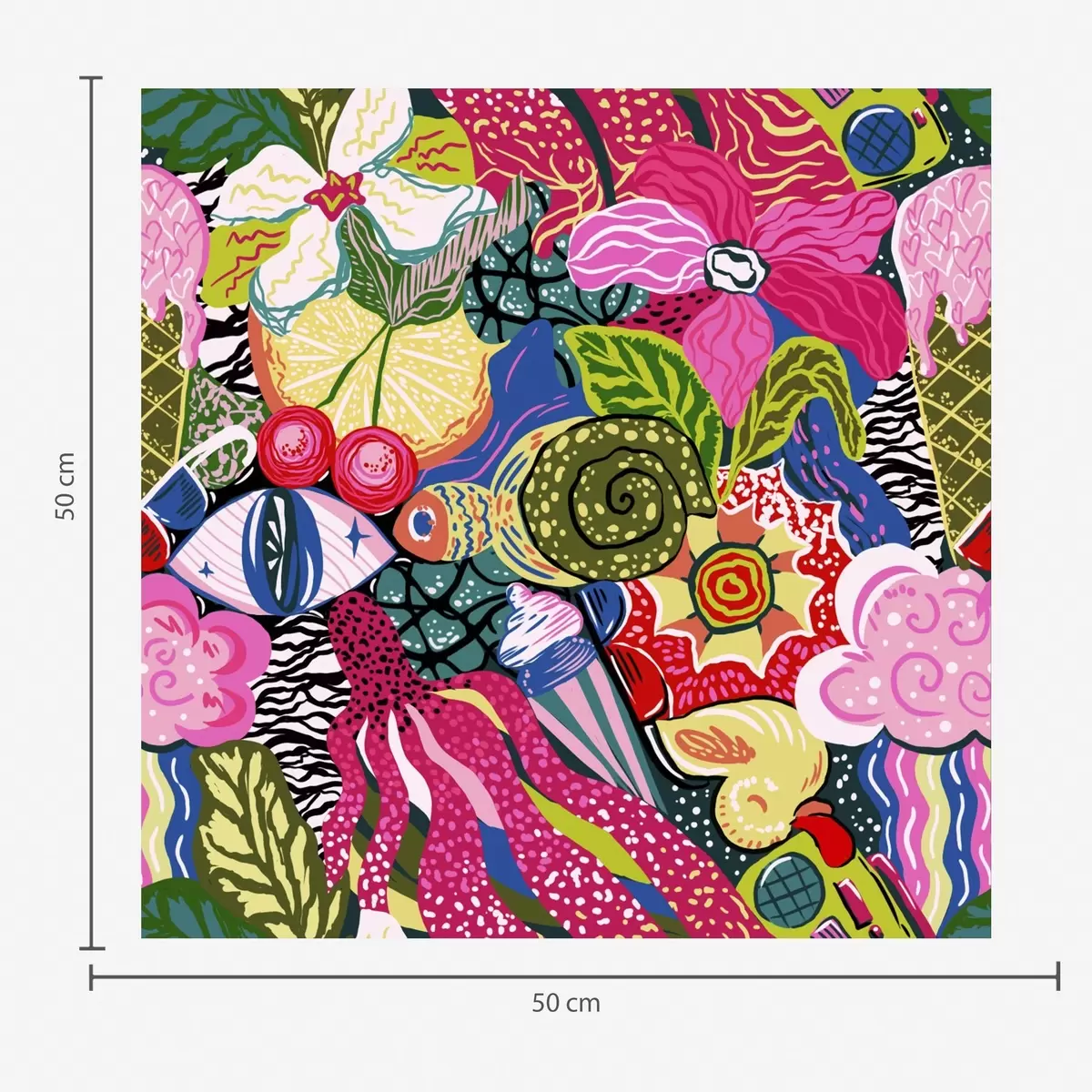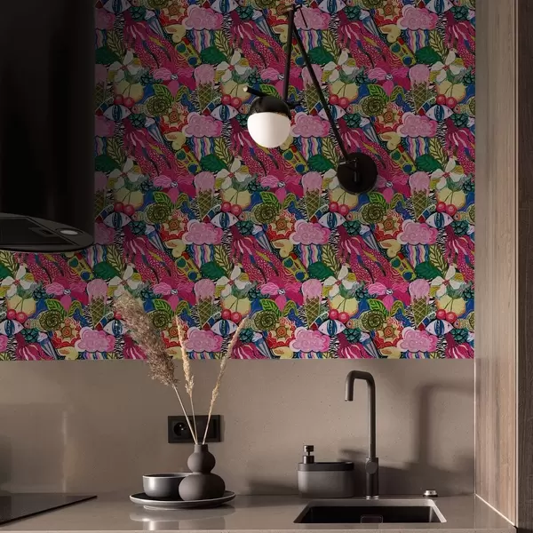 Tapet Pop-art abstract cu flori, fructe de pădure și modele Nr. a00471
