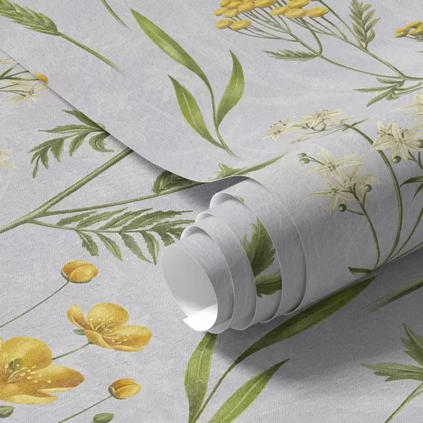 Tapet Flori galbene și verdeață pe un fundal gri deschis Nr. a00472