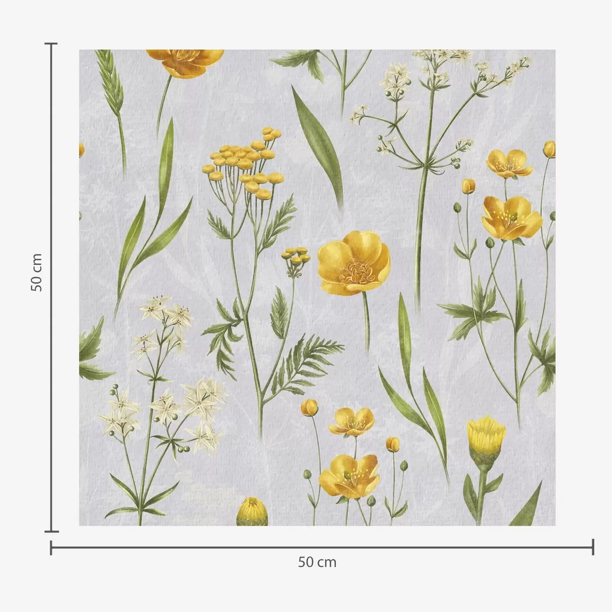 Tapet Flori galbene și verdeață pe un fundal gri deschis Nr. a00472