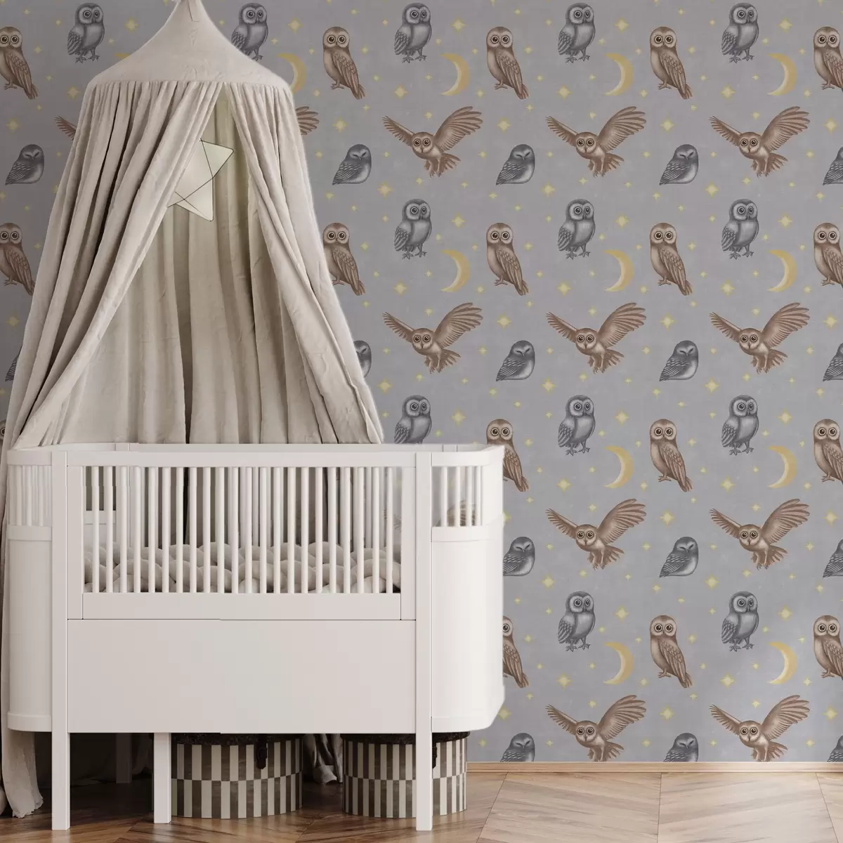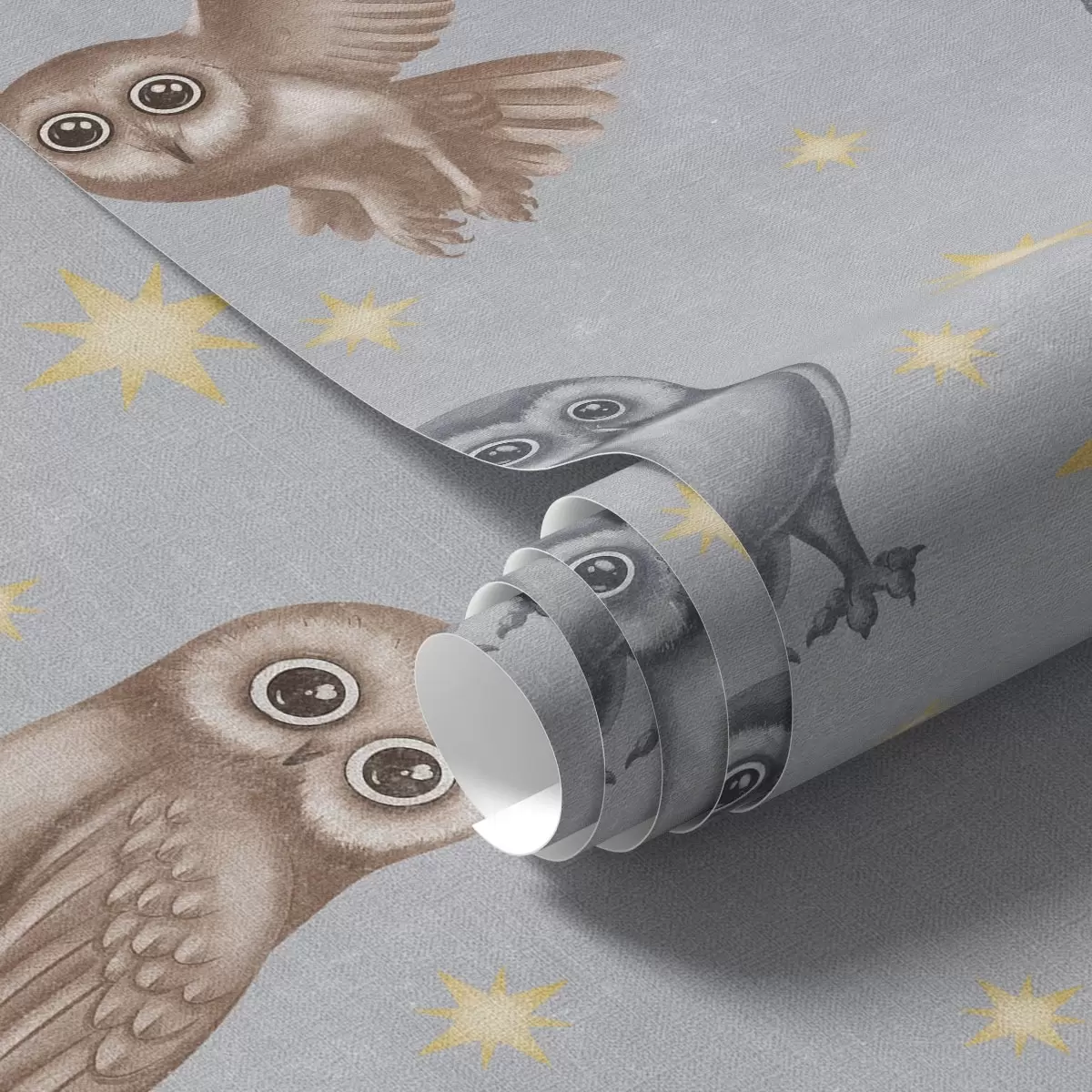 Tapet Bufnițe și stele pe un fundal gri cer de noapte Nr. a00475
