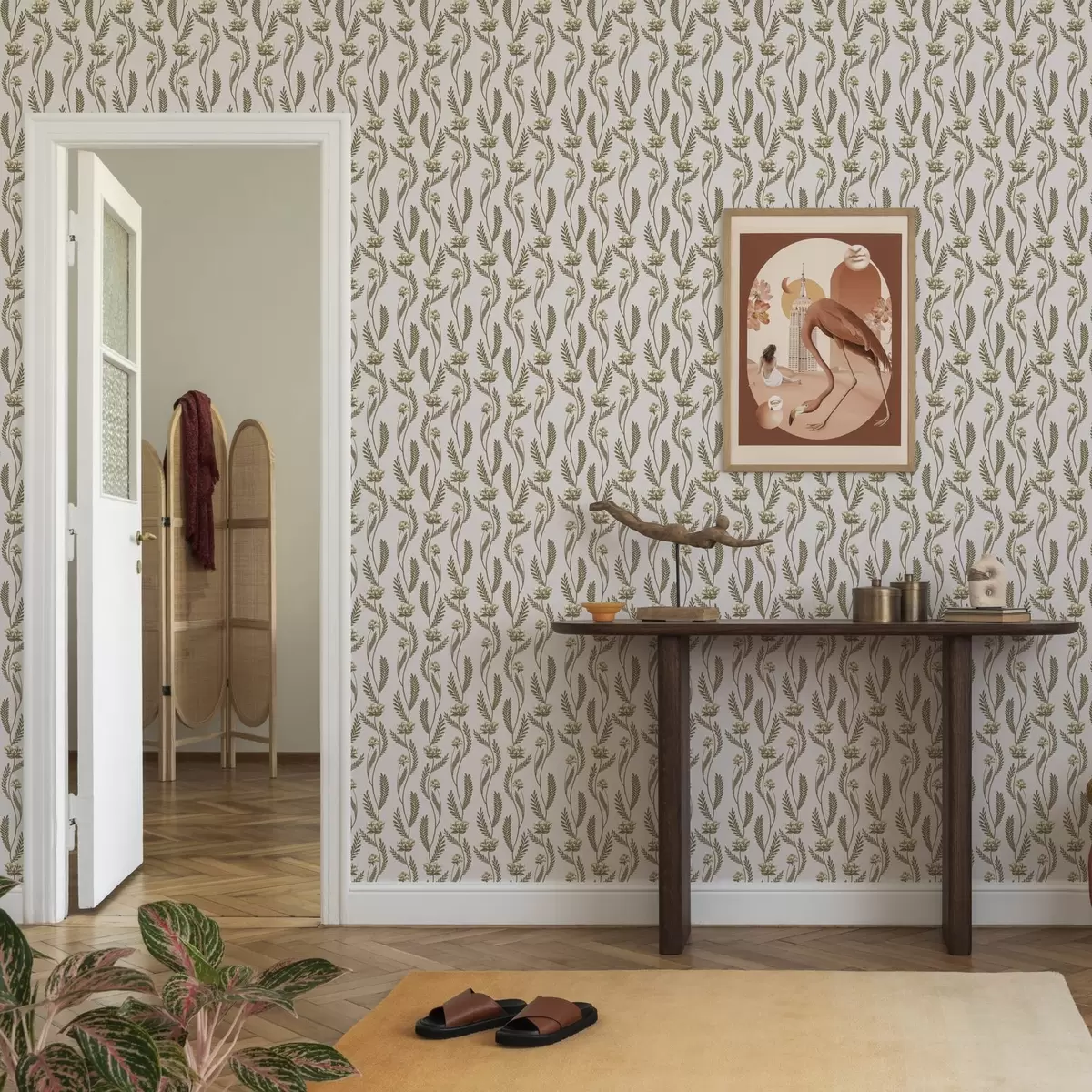 Tapet Ornament vertical cu flori albe pe un fundal roz Nr. a00476