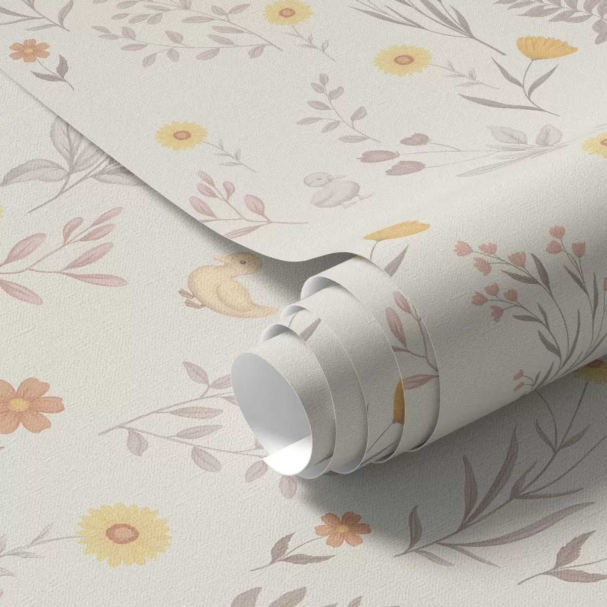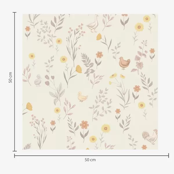 Tapet Flori de câmp și găini în tonuri pastelate moi Nr. a00478