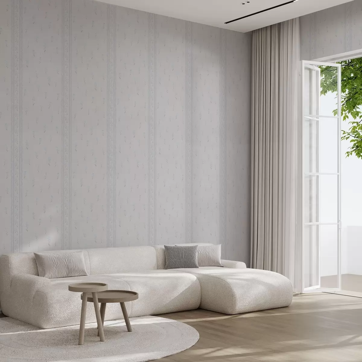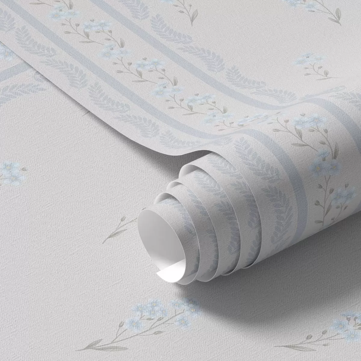 Tapet Fundal alb cu flori albastre și dungă decorativă Nr. a00484v1