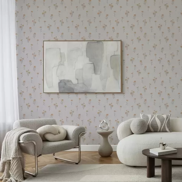 Tapet Flori mici portocalii pe un fundal gri deschis Nr. a00486