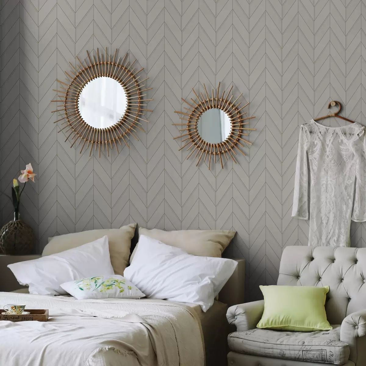 Tapet Model geometric în tonuri deschise cu linii Nr. a00491