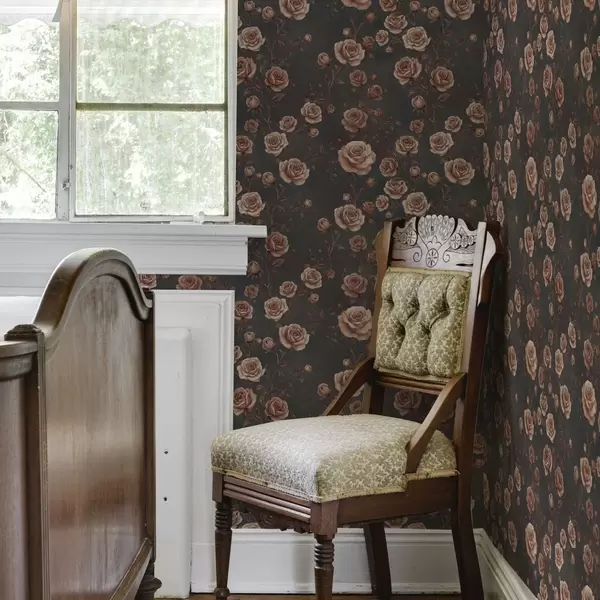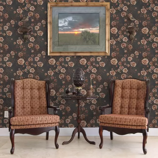 Tapet Trandafiri vintage pe fundal grafit, paletă teracotă Nr. a00497v1