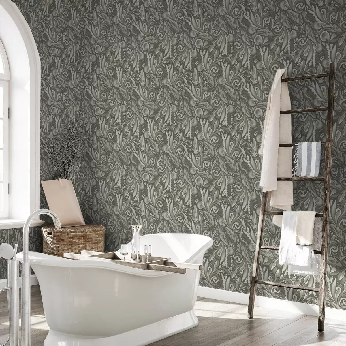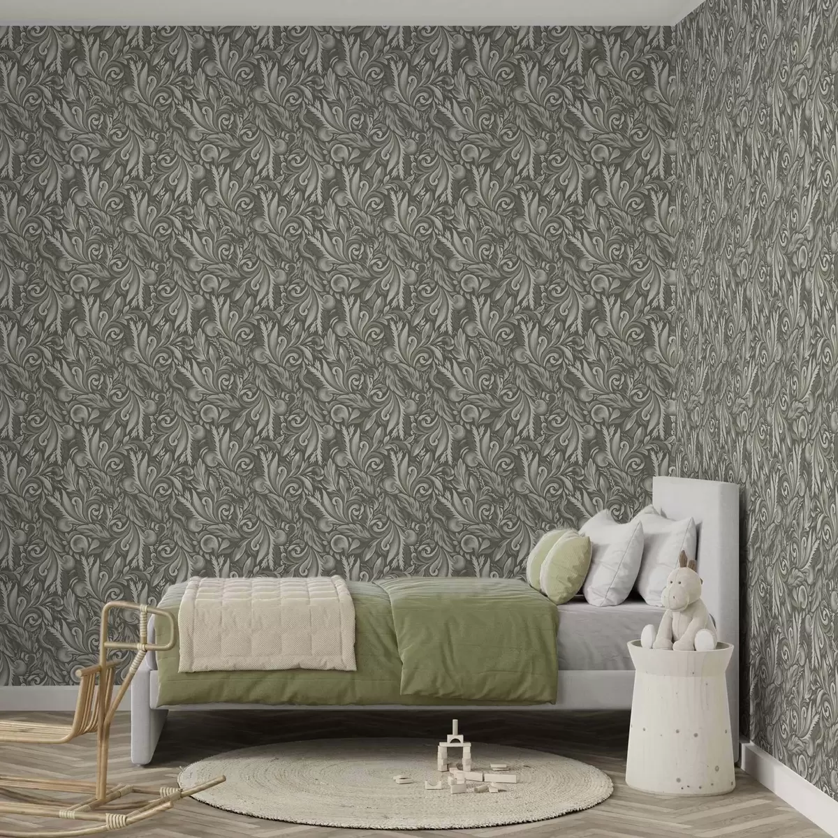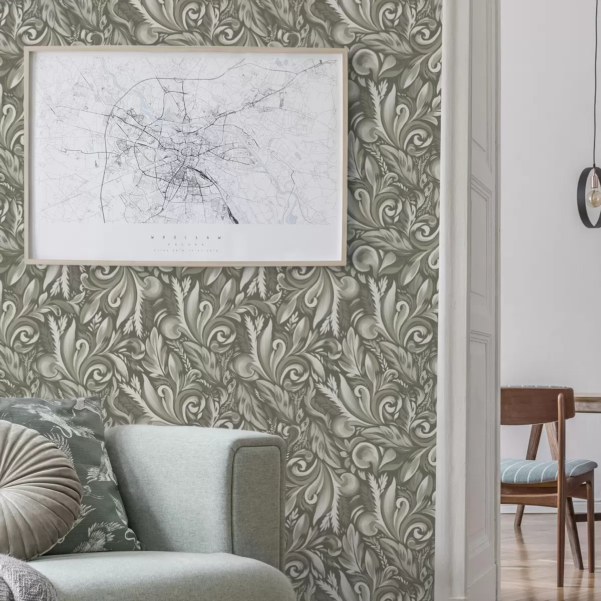 Tapet Volute Acanthus într-o paletă de culori bej-măsliniu Nr. a00501