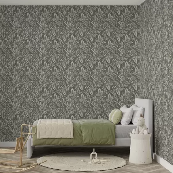 Wallpaper Volute Acanthus într-o paletă de culori bej-măsliniu a00501
