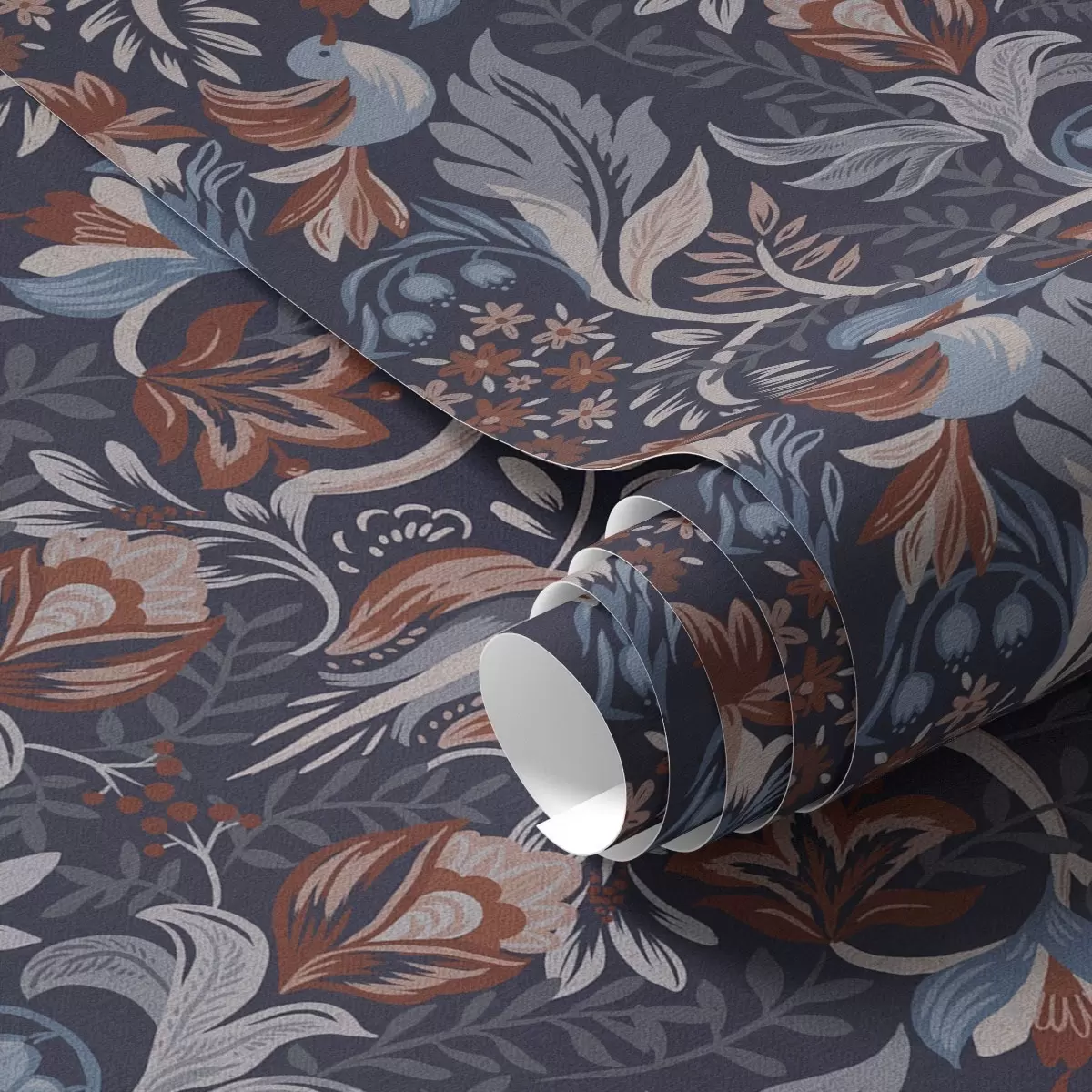 Tapet Flori și păsări populare pe un fundal albastru închis Nr. a00502