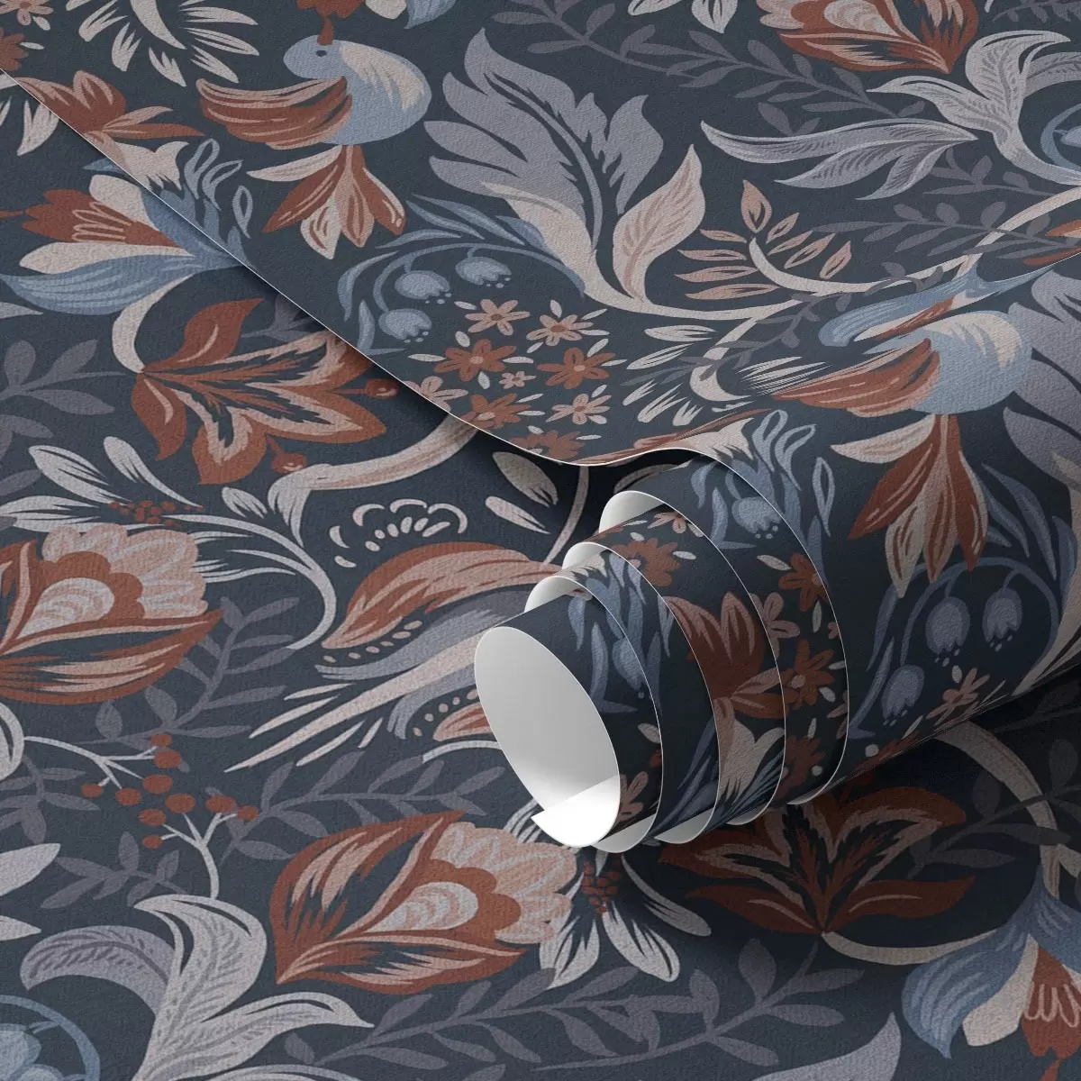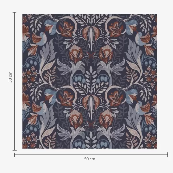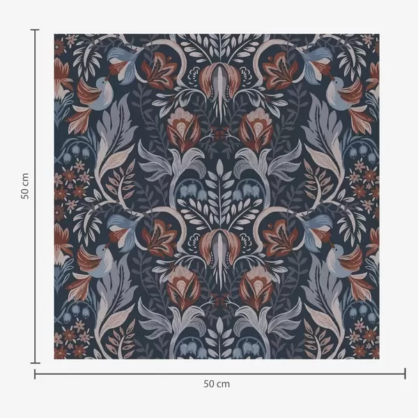 Tapet Ornament popular cu păsări, indigo intens Nr. a00502v1
