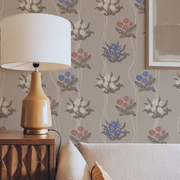 Tapet Flori retro cu linii ondulate pe fond bej cald Nr. a00503