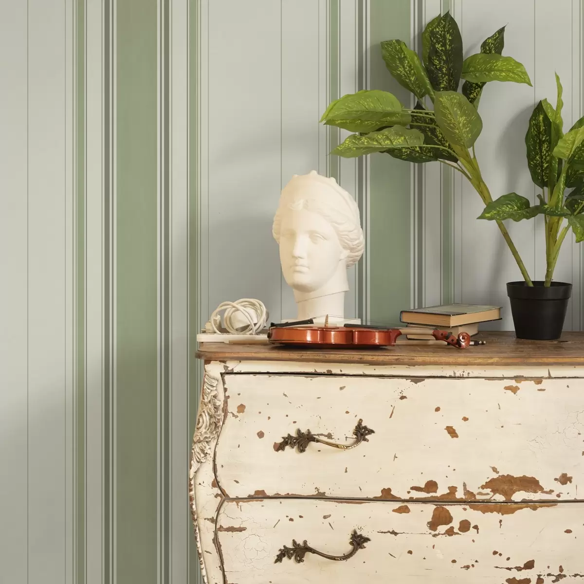 Tapet Fond crem cu o dungă centrală verde lată Nr. a00519