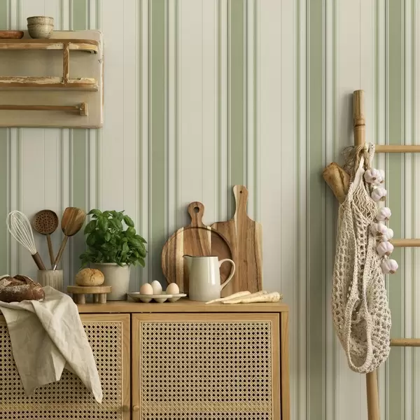 Tapet Fond deschis cu dungi de accent verde închis Nr. a00562