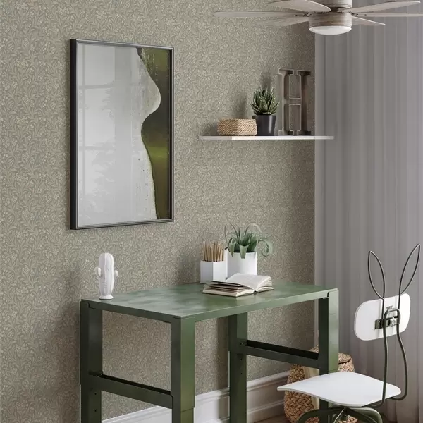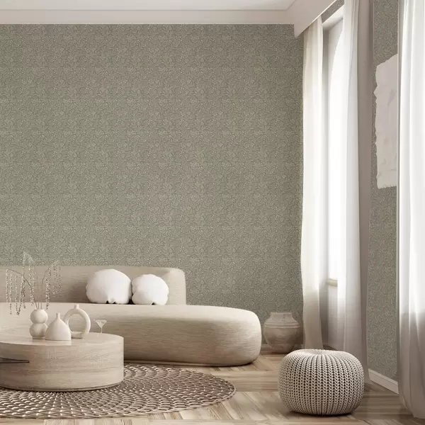 Tapet Stil Morris: ramuri bej pe fond gri-verde Nr. a00569