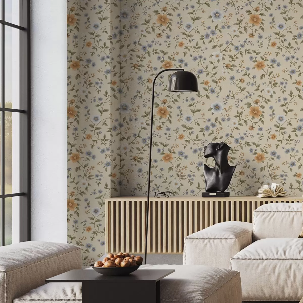 Tapet Ramuri florale cu flori albastre și piersici Nr. a00575