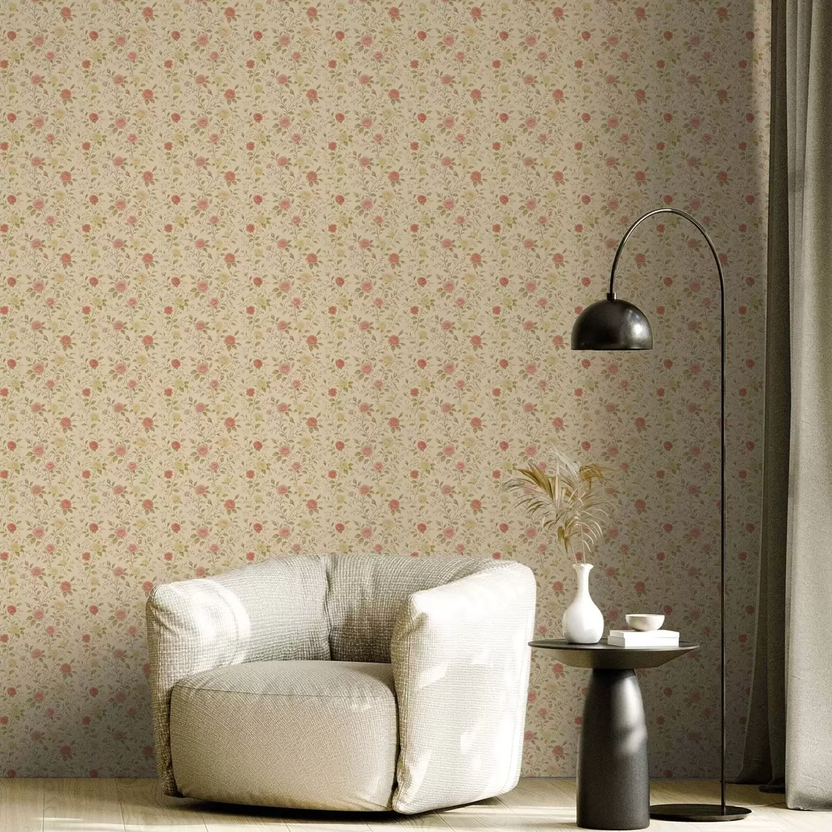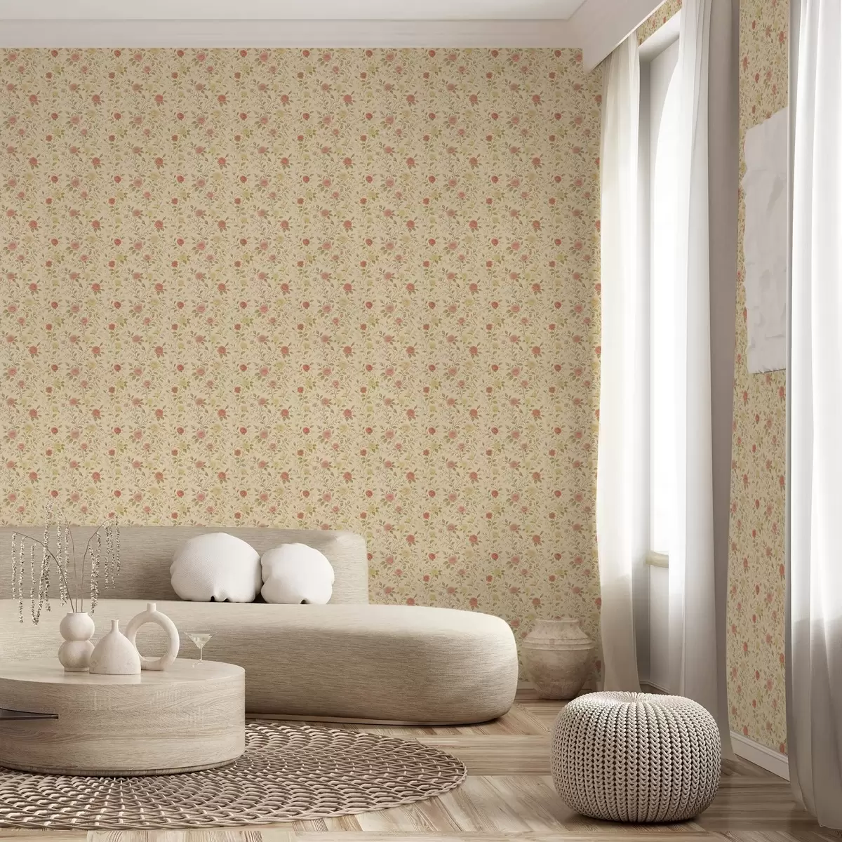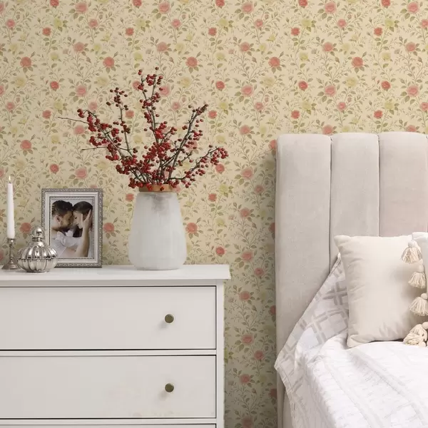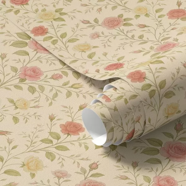 Tapet Trandafiri vintage în nuanțe de piersică și galben pe fond crem Nr. a00577