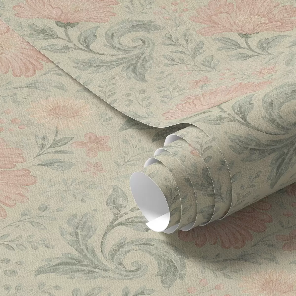 Tapet Flori mari de piersic vintage cu frunze de salvie Nr. a00580