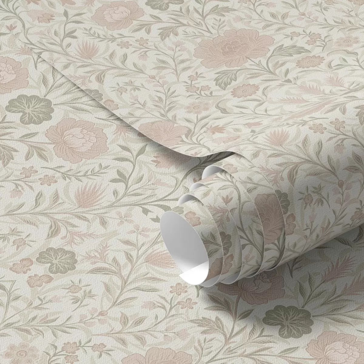 Tapet Stilul Morris: bujori și ierburi în nuanțe delicate de bej-verde Nr. a00581